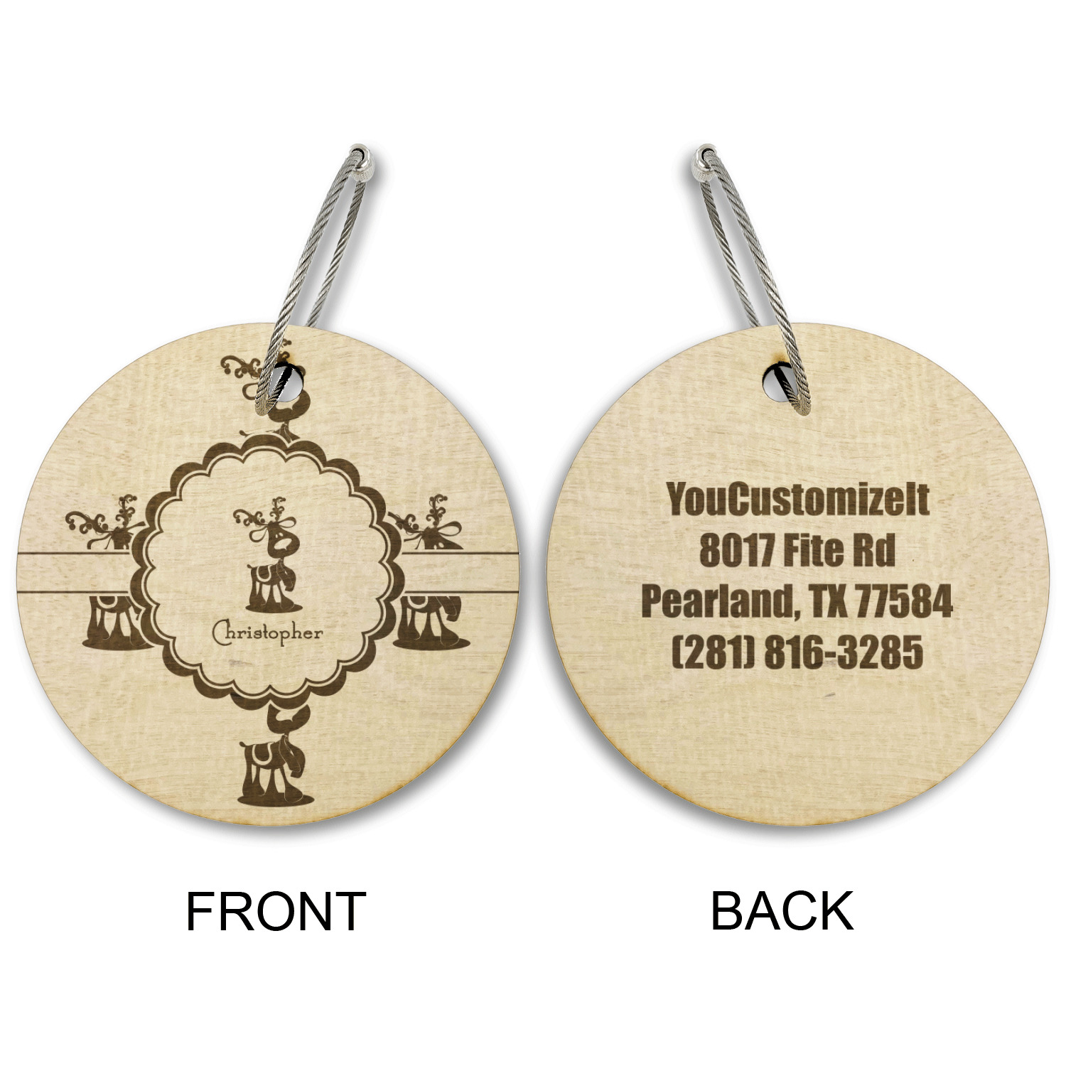 Made from a premium hardwood, these luggage tags are laser engraved and cut just for you. The front contains your design of choice and the back has your contact information to ensure your luggage gets back to you if ever lost.