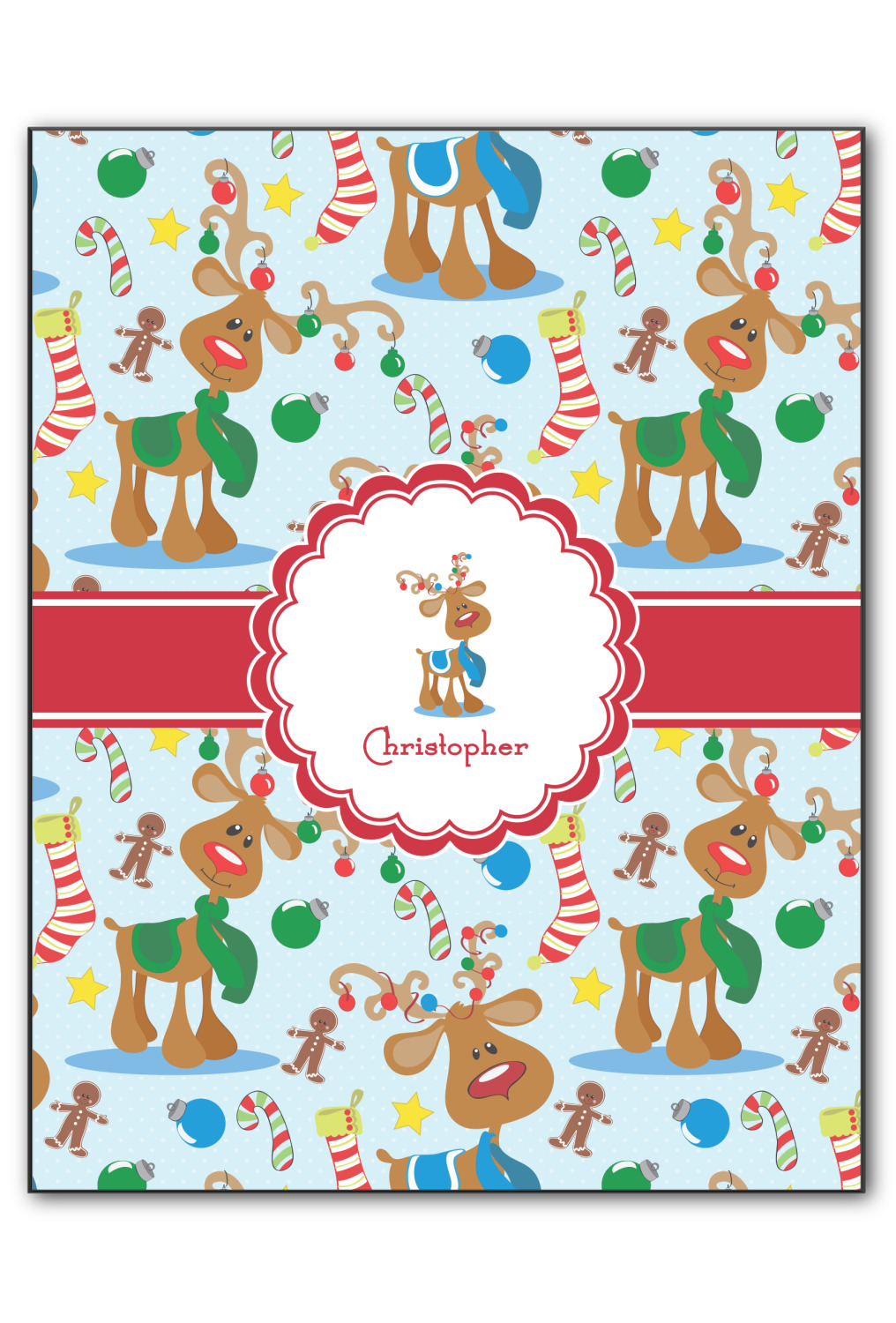 Who doesn't love reindeer? Everyone can agree this fun design of Santa's famous helpers clad in festive scarves and ornaments on their antlers, surrounded by candy canes, gingerbread men, and Christmas stockings, likely stuffed with even more goodies, is absolutely adorable. The ribbon and label are red, and the label includes a little reindeer, ready for the holidays, along with your name or text for personalization.