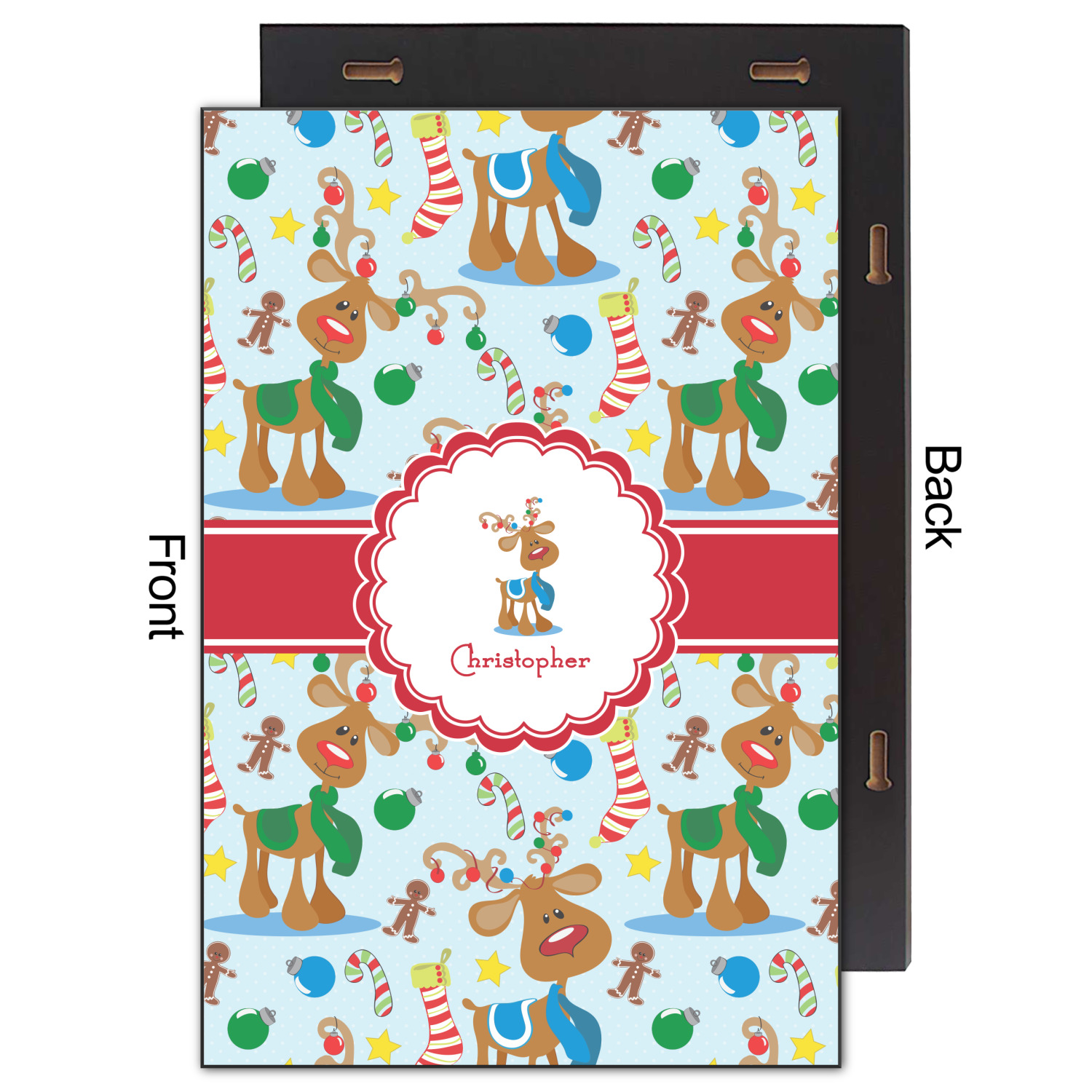 Who doesn't love reindeer? Everyone can agree this fun design of Santa's famous helpers clad in festive scarves and ornaments on their antlers, surrounded by candy canes, gingerbread men, and Christmas stockings, likely stuffed with even more goodies, is absolutely adorable. The ribbon and label are red, and the label includes a little reindeer, ready for the holidays, along with your name or text for personalization.