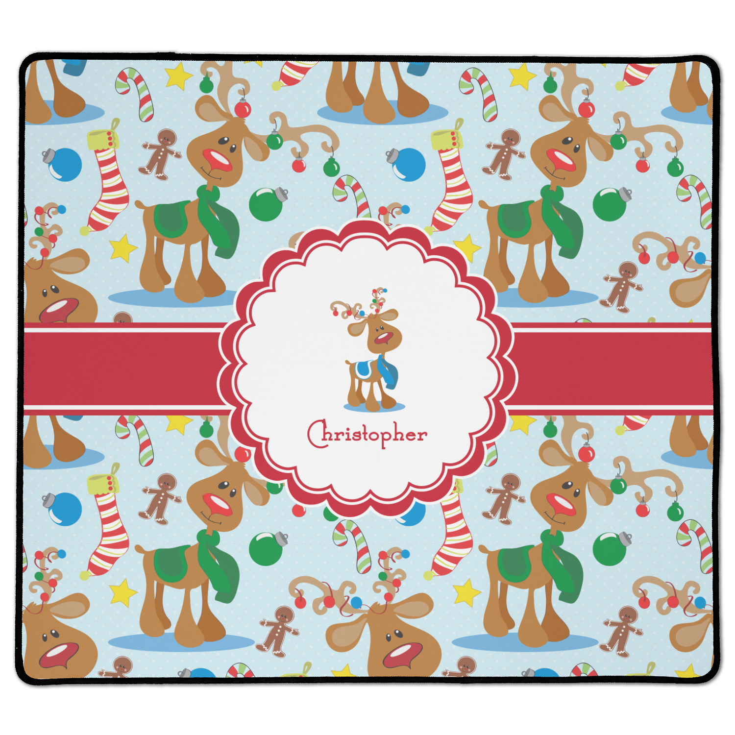 Who doesn't love reindeer? Everyone can agree this fun design of Santa's famous helpers clad in festive scarves and ornaments on their antlers, surrounded by candy canes, gingerbread men, and Christmas stockings, likely stuffed with even more goodies, is absolutely adorable. The ribbon and label are red, and the label includes a little reindeer, ready for the holidays, along with your name or text for personalization.