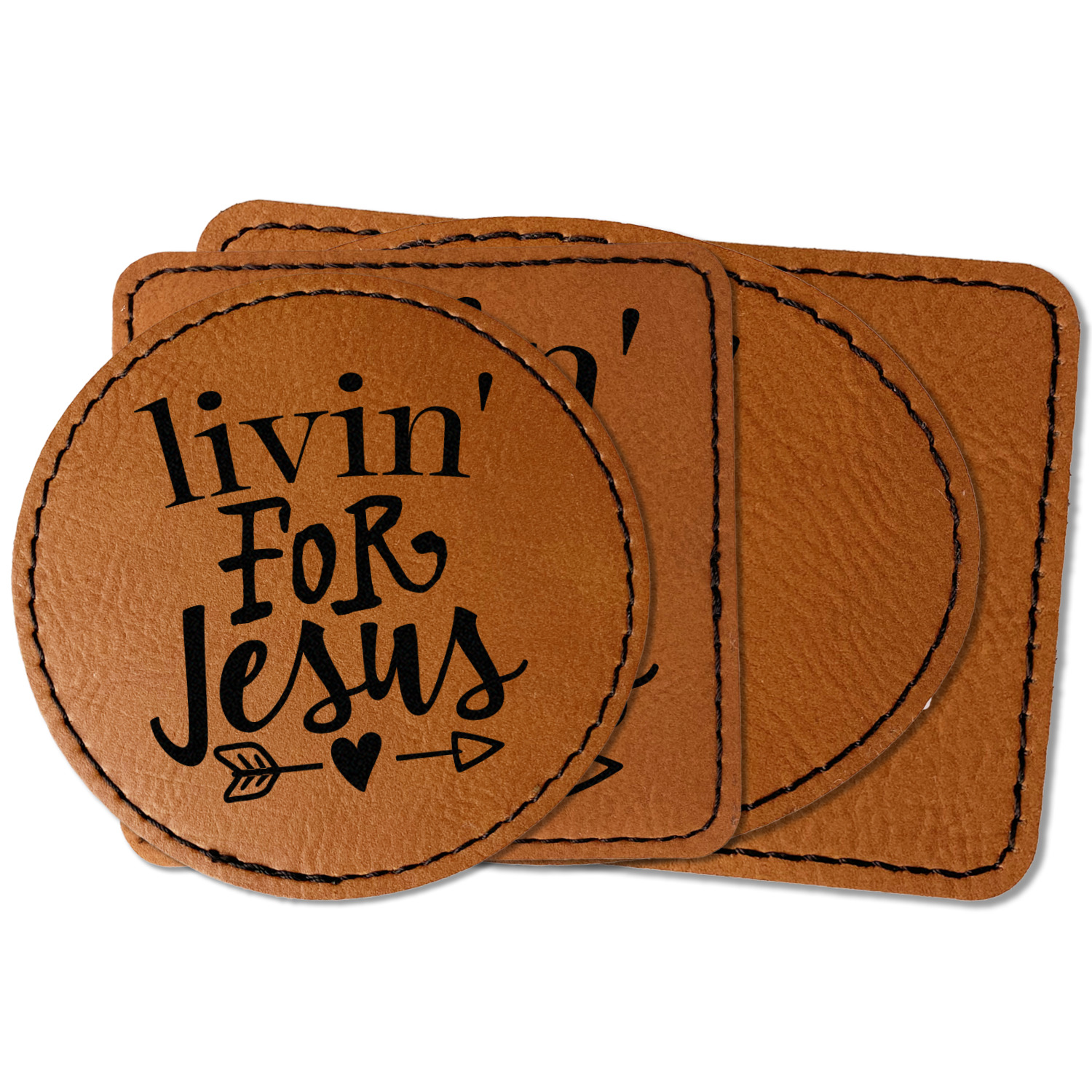 Our leather patches come in 4 different shapes - Square (3" x 3"), Round (3" x 3"), Oval (3.5" x 2.5"), Rectangle (3.5" x 2.5") and a beautiful rich brown rawhide or cognac color.