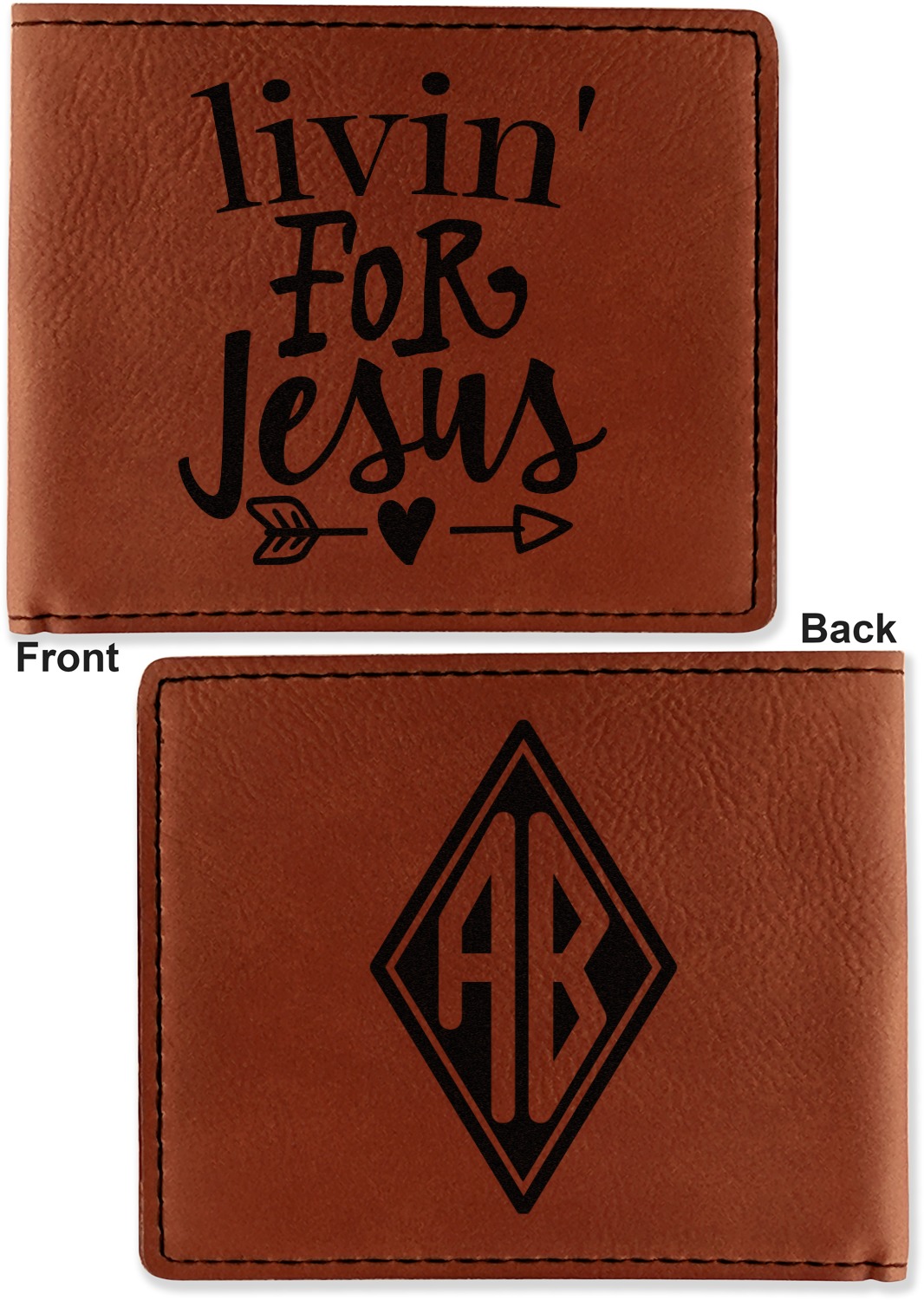 Your bifold wallet will be personalized by laser engraving, which will be a black color on the wallet. Choose a graphic, text, or monogram to personalize your wallet. There are thousands of choices in our design center.