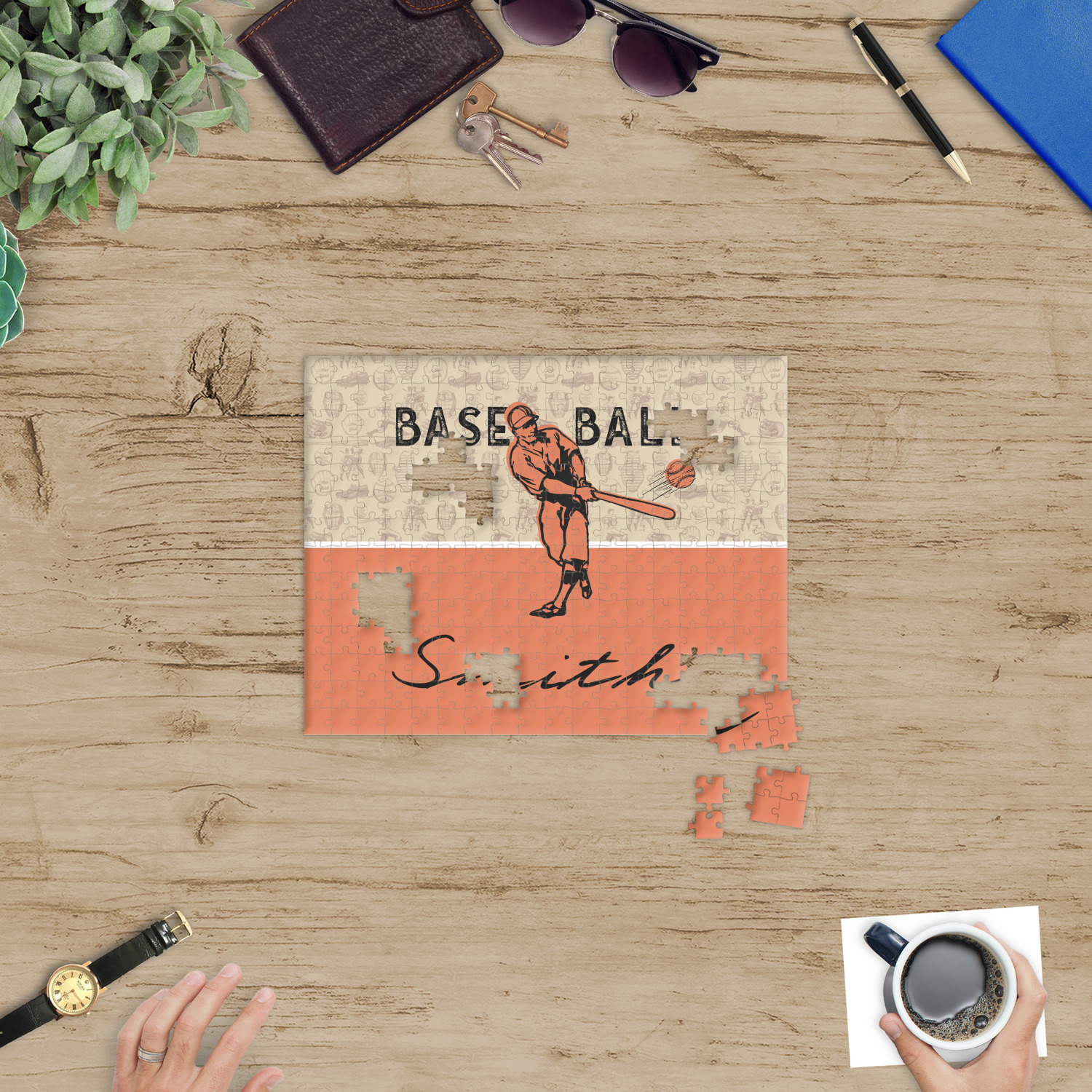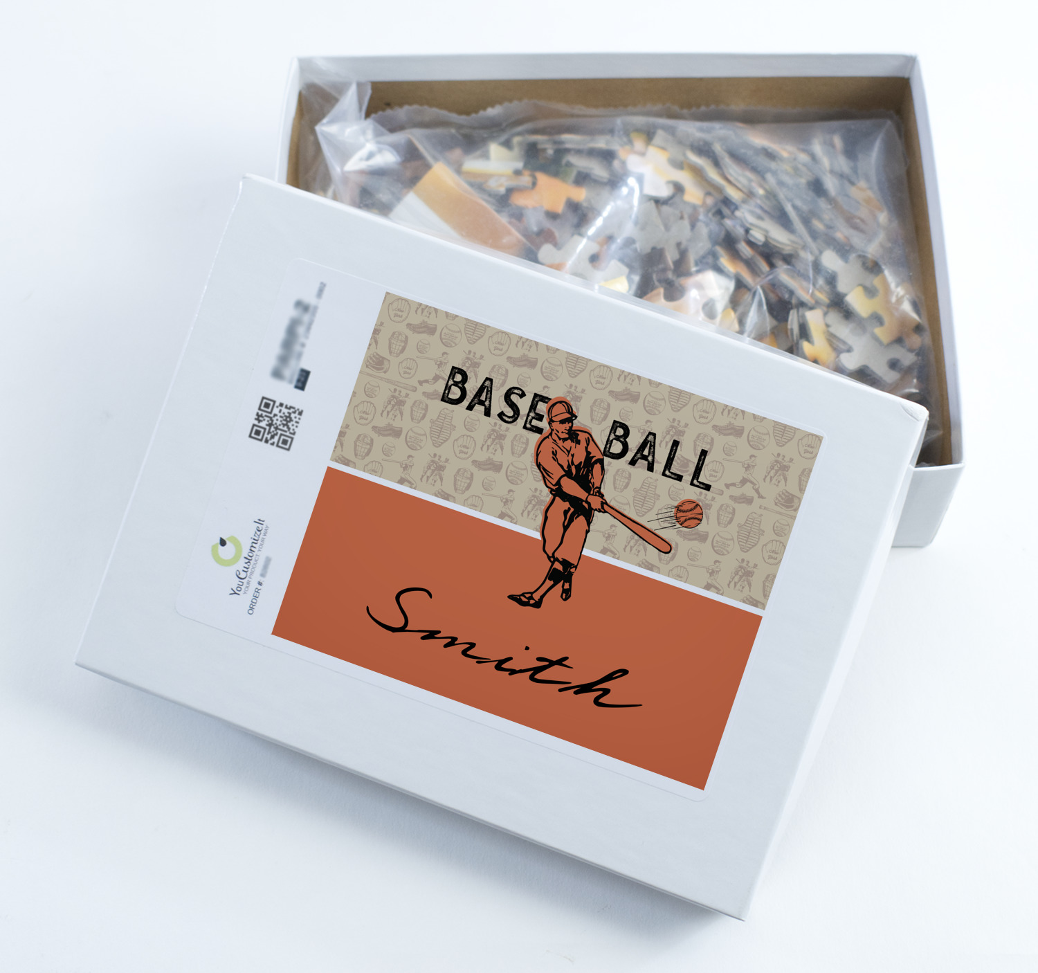 Depending on the look you are trying to achieve, you can add; a thematic pattern or background, with a photo in a frame and text or personalization to your puzzle. Basically if you can imagine it, you can design it!