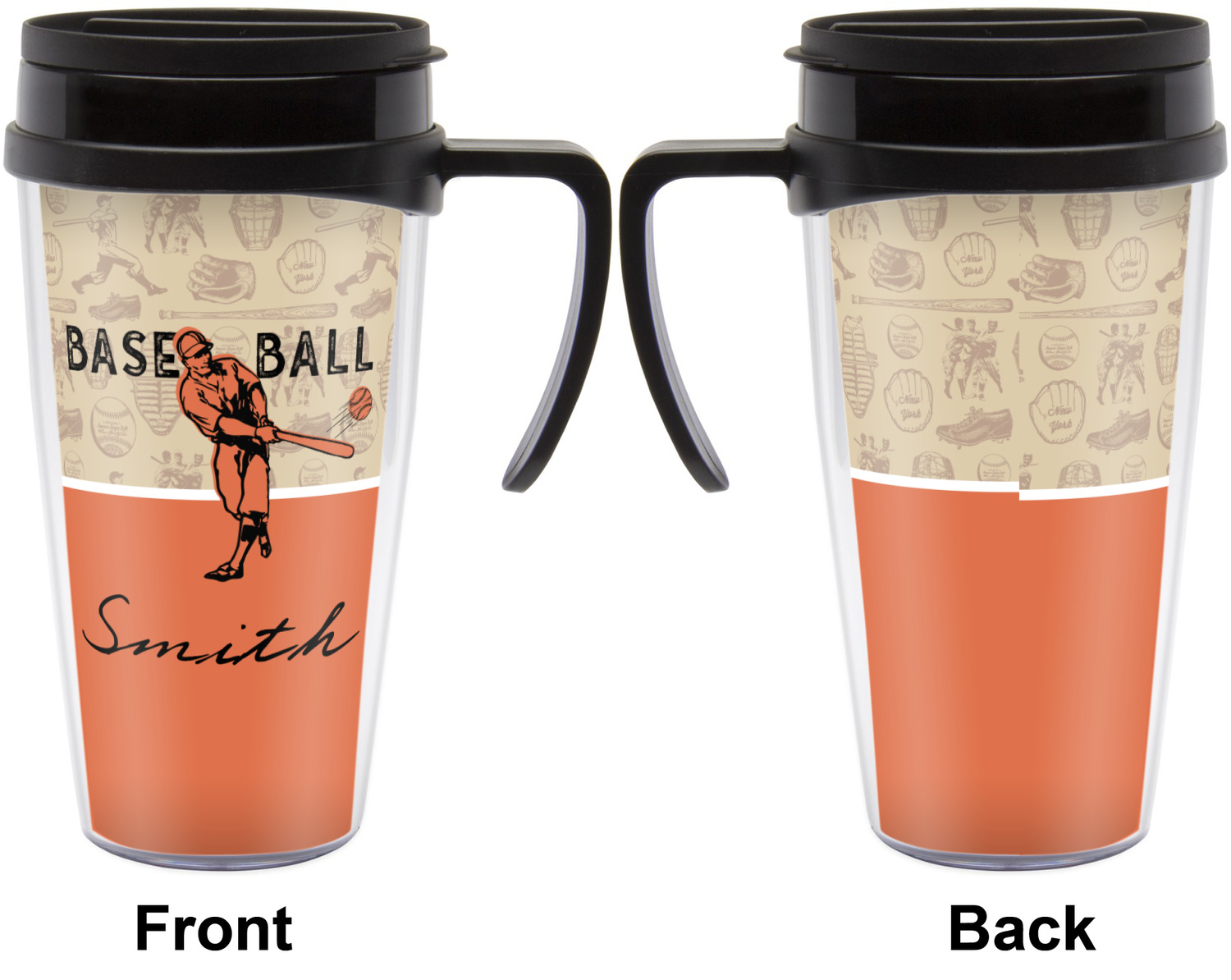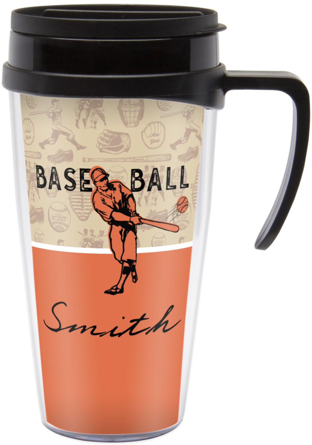 These thermal mugs are free of BPA, and insulated, to keep your drinks hot or cold. The black, snap on lid and the slider for sipping allows you to conveniently sip your drink without constantly worrying about a disastrous spill. We offer this mug with and without a handle, to better suit your needs. Each custom thermal mug holds up to 16 ounces of liquid and displays your customization on all sides on premium gloss media inserts.