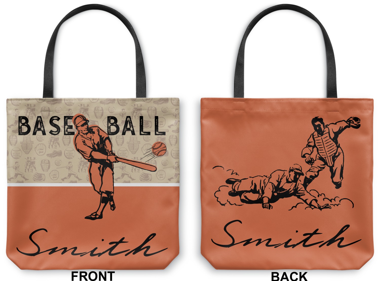 Our totes are made right here in the USA. Your design is printed on canvas fabric; the fabric is then cut and sewn on the sides and on the bottom to add an approximately 3.5 inch gusset. Black cotton handles are sewn in and reinforced. Your tote has a designs on both sides - the designs can be the same or different - the choice is yours. The inside of the tote has a black fused lining.