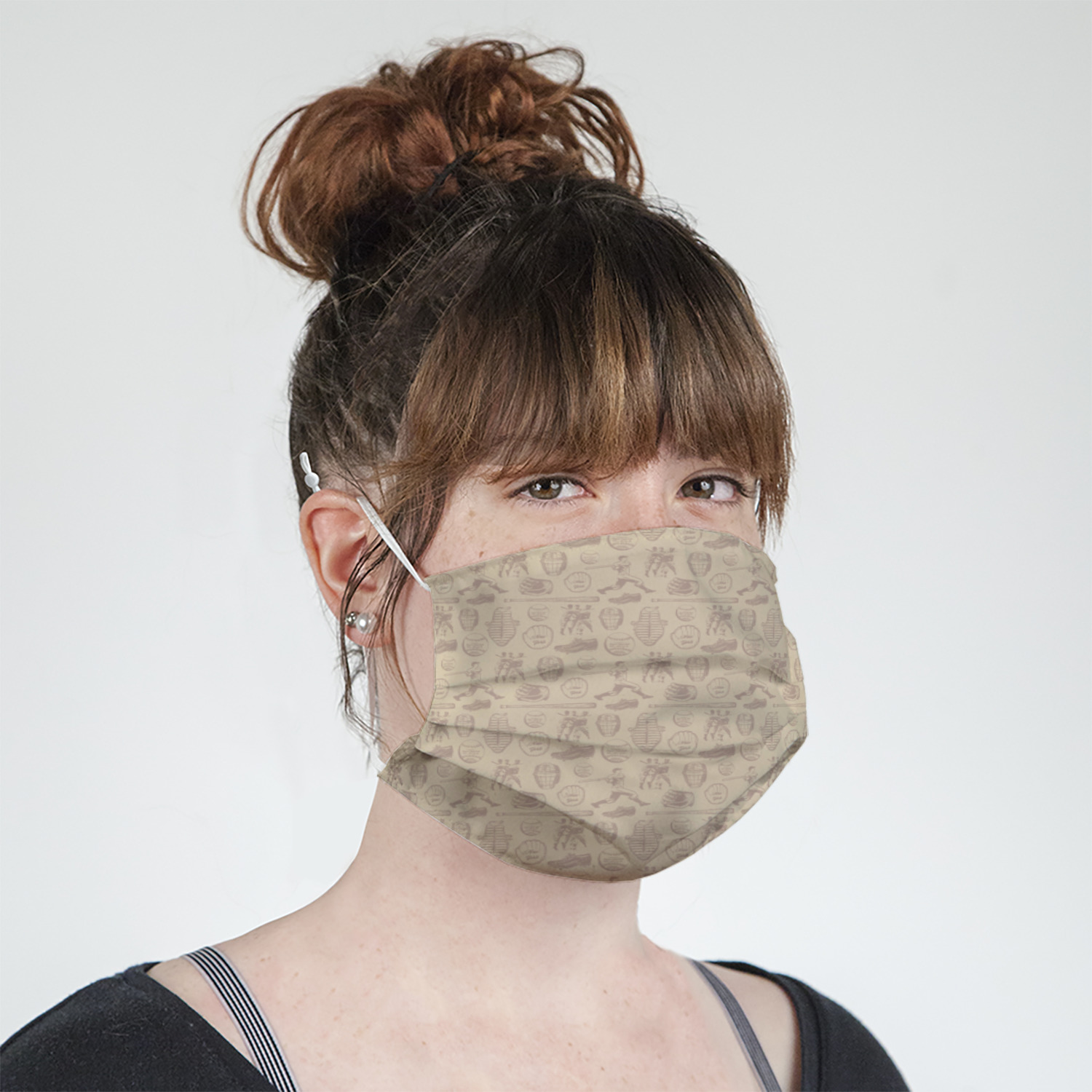 These fun face masks are 7" wide and 3.5" high. They feature pleats, adjustable ear loops, and are made with two layers of fabric. The top layer where your design is printed is a breathable polyester sheeting, while the inside layer is a soft microfiber polyester