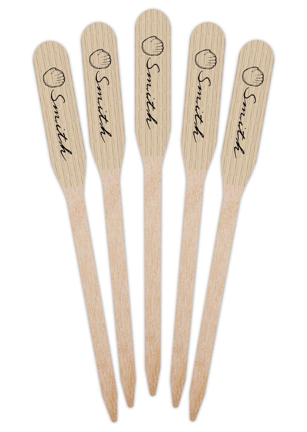 Our paddle style food & drink picks are available in 2 print styles - single sided and double sided.