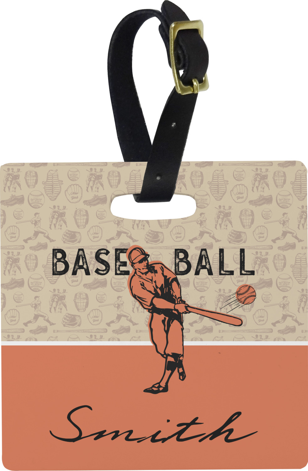 These personalized bag tags are sold in a variety of shapes, so that you may find the product that meets your vision exactly. We sell a round luggage tag, which measures at approximately 4" x 4". Our square luggage tag is about 3.5" x 3.5", while our rectangular version is 2.75" x 4 ".