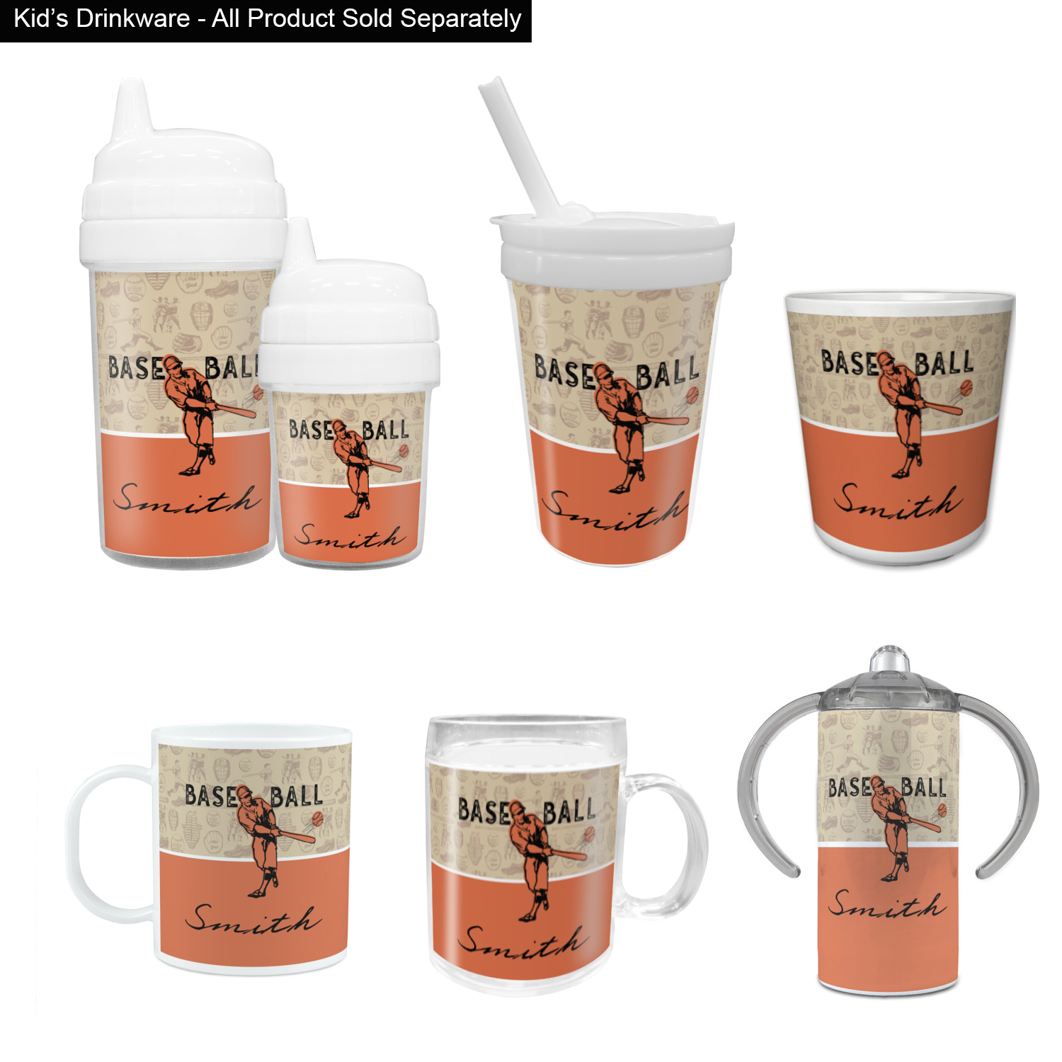 Our toddler cups are free of BPA, and have a twist-open lid so that you can easily fill and clean these cups for your young ones. Each cup also comes with a sippy nozzle to reduce spills. We offer these custom sippy cups in two different sizes; we have a baby sippy cup that holds 5 ounces, and a toddler sippy cup that holds 10 ounces. Your customization is printed on a premium glossy media insert that is placed within these toddler drinking cups.