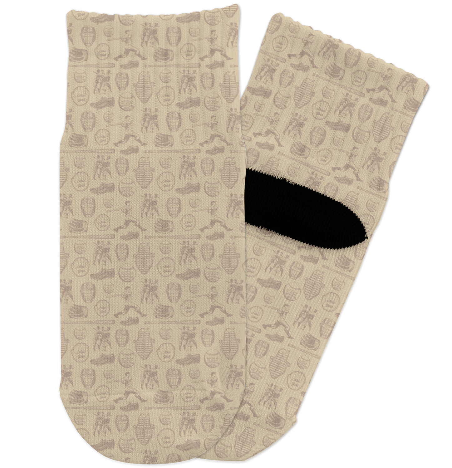 These crew socks are a great find, made of polyester and spandex. They are quite comfy! They are even USA made. They fit a toddler size ranging from about 6-10. They have a black heel as well as a logo on the bottom. They have a nice ribbed top to ensure that their sock stays on their little foot.