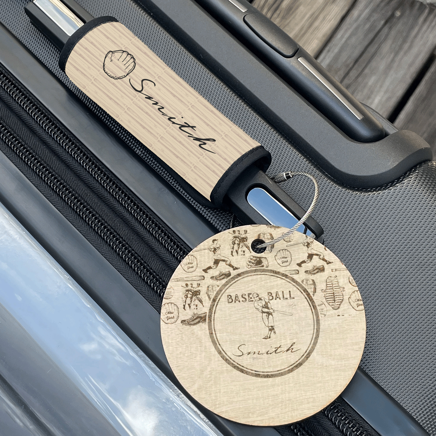 The wood has a durable hard-wax oil finish on it to ensure a lasting sheen and durable finish. The wire rope keychain has a strong screw latch to ensure the tag stays secure to your luggage.