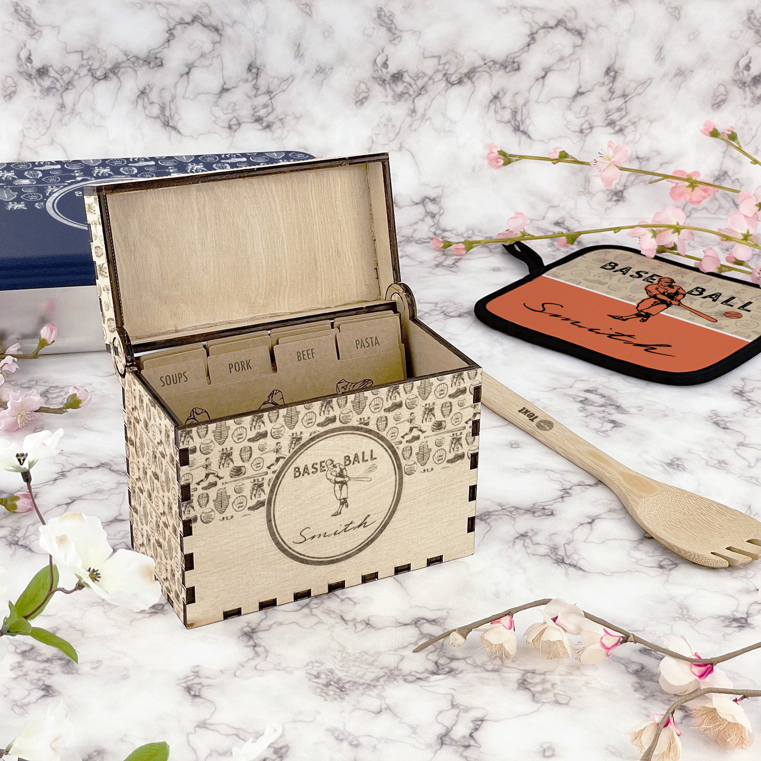 Using our design library you can design your recipe box to be personalized just for you. We will then laser engrave it and assemble it and have it ready for you to insert your recipe cards when you recieve it.