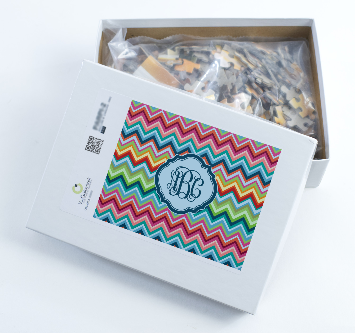 We print our puzzles on thick white chipboard in vibrant colors, then laminate the chipboard and die cut your puzzle. Your jigsaw puzzle is shipped to you in a box with the image of the puzzle on the box.