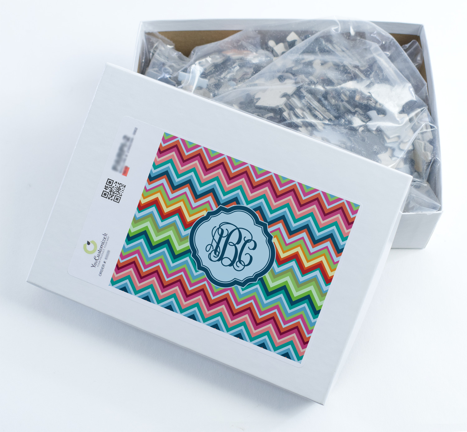 We print our puzzles on thick white chipboard in vibrant colors, then laminate the chipboard and die cut your puzzle. Your jigsaw puzzle is shipped to you in a box with the image of the puzzle on the box.