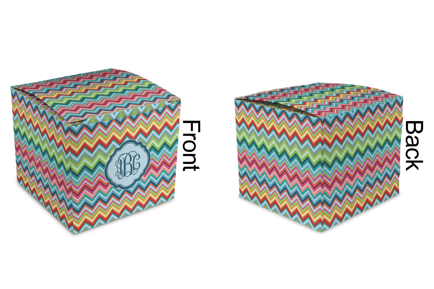 These cubic favor boxes are printed in full color on premium heavyweight cardstock that has a smooth semi-gloss finish.