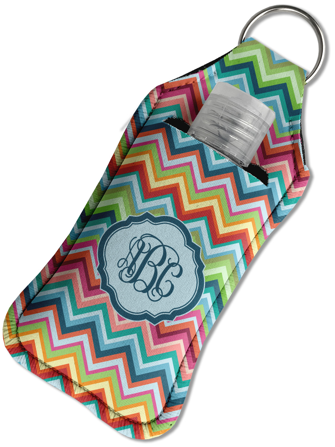 Each hand sanitizer holder comes with its own empty travel-sized, refillable hand sanitizer sure to fit snug in your customized sanitizer case! Our hand sanitizer cases are a durable, yet soft neoprene material sure to last any daily activities or travel agenda. Customize and personalize a hand sanitizer bottle holder with one of our two sizes - small (4.25" x 2.25") or large (5.5" x 2.5"). Each travel sanitizer holder comes with a keyring for attachment on bags, keys, or more!