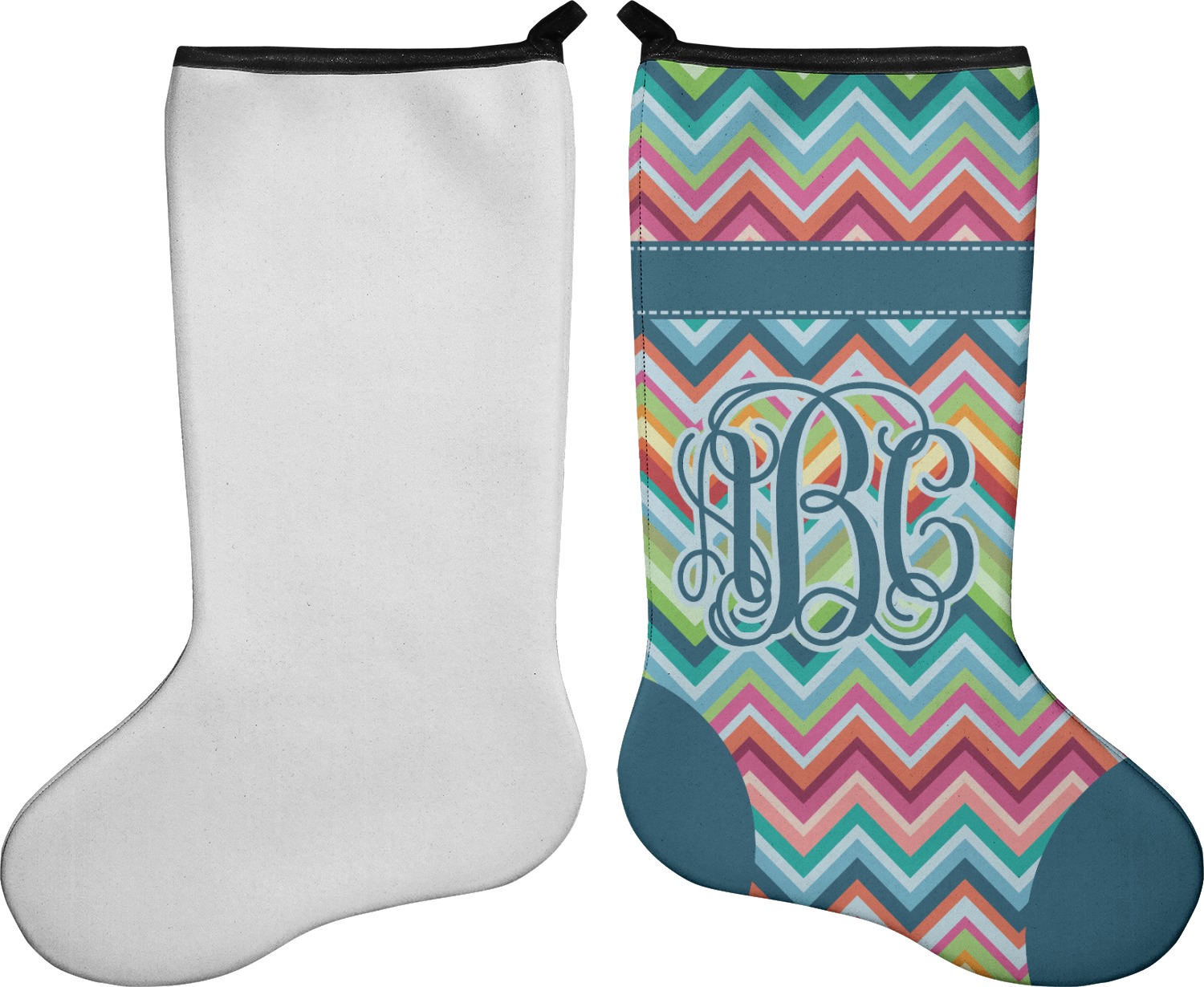 These 17" x 11" stockings are made of neoprene and have a black trim to give them a fantastic finished look. Your very own design is printed right onto the stocking, either single sided with white on the back or double sided where can use the same or different designs / patterns on the front and the back - the choice is yours. At the top of the stocking is a 2" loop for hanging.