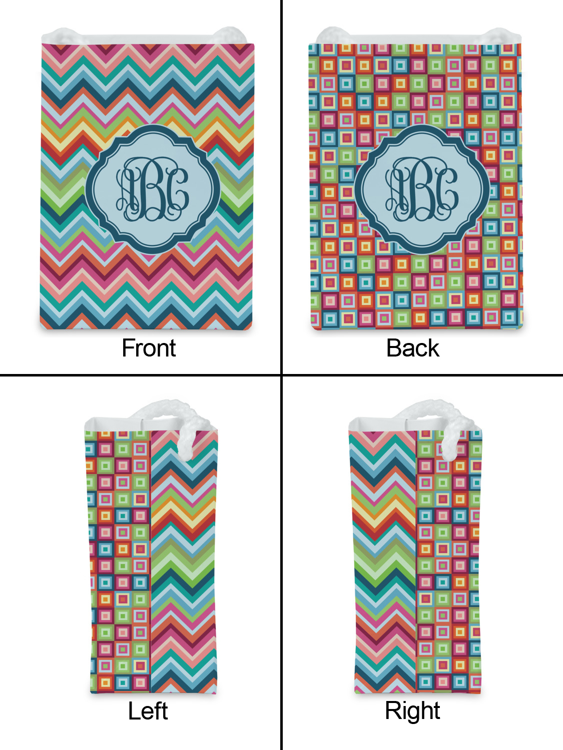These jewelry gift bags are available in two finishes - matte or gloss. The are digitally printed in full color, then cut down to size, scored & folded. A single handle is attached.