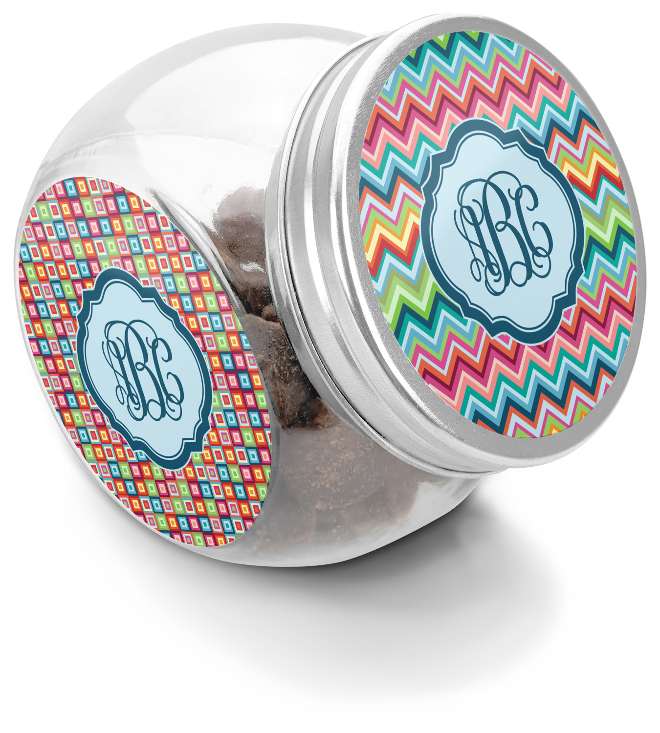 This treat jar is an excellent way to store treats for your favorite canine or feline. Moreover, their delicate, classy appearance makes them a tasteful addition to your countertop's décor. Crafted from clear glass, its unique construction and silver metal, screw-on lid allows for quick and easy access. Three, permanent, vinyl stickers are applied to both sides of the jar and lid, presenting your personalized design. The base of this glass, dog treat jar is 3.4" x 4.75", and the jar stands at 5" tall. Though on the smaller side, this jar is best suited for smaller treats or training treats.