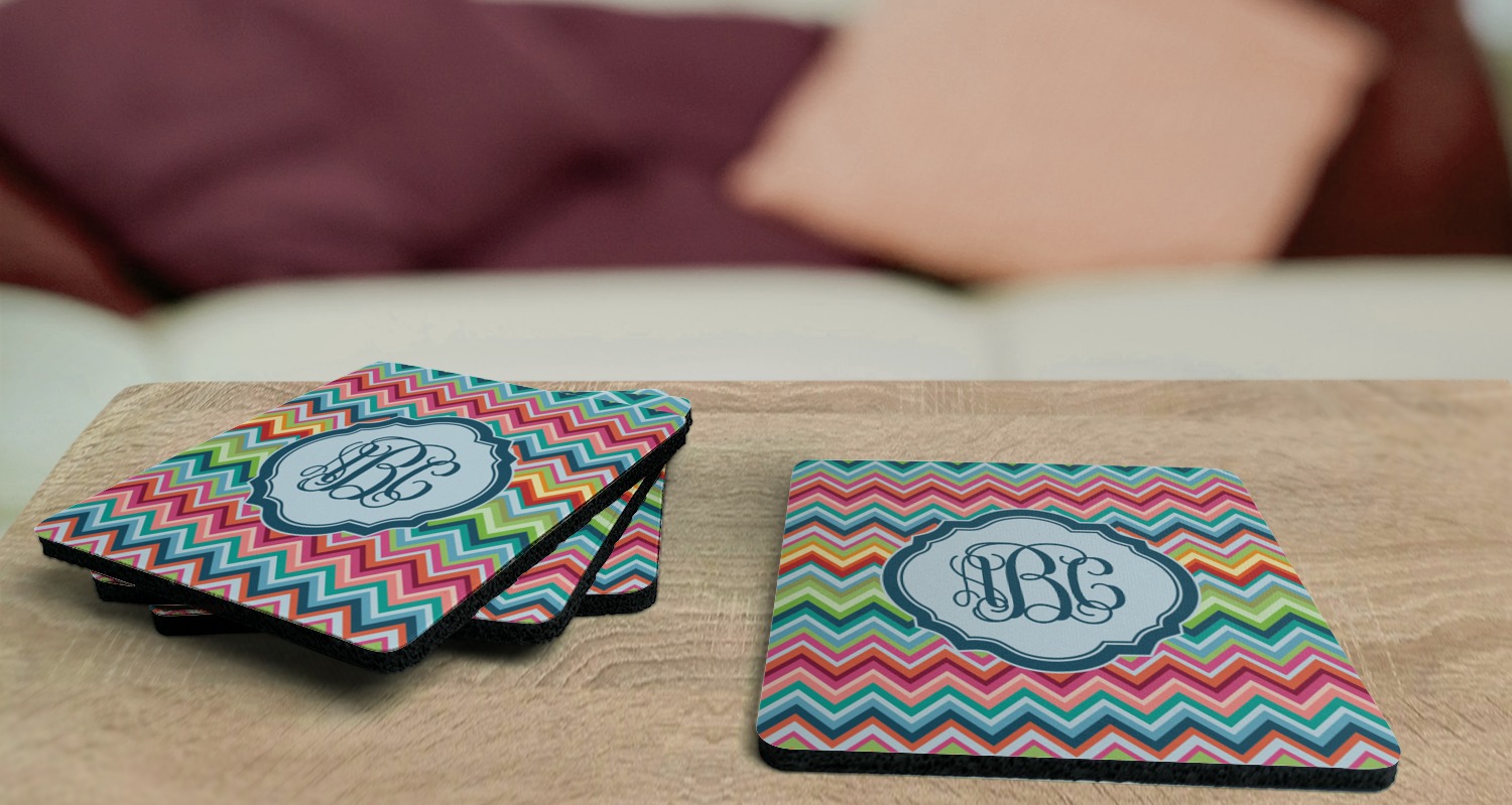 Replace your boring, run-of-the-mill coasters with a set of 4 personalized coasters! When personalized, these coasters will protect your beloved surfaces while adding to your home's decor! Thanks to your coasters bright colors and unique design, your guests will be eager to use them!
