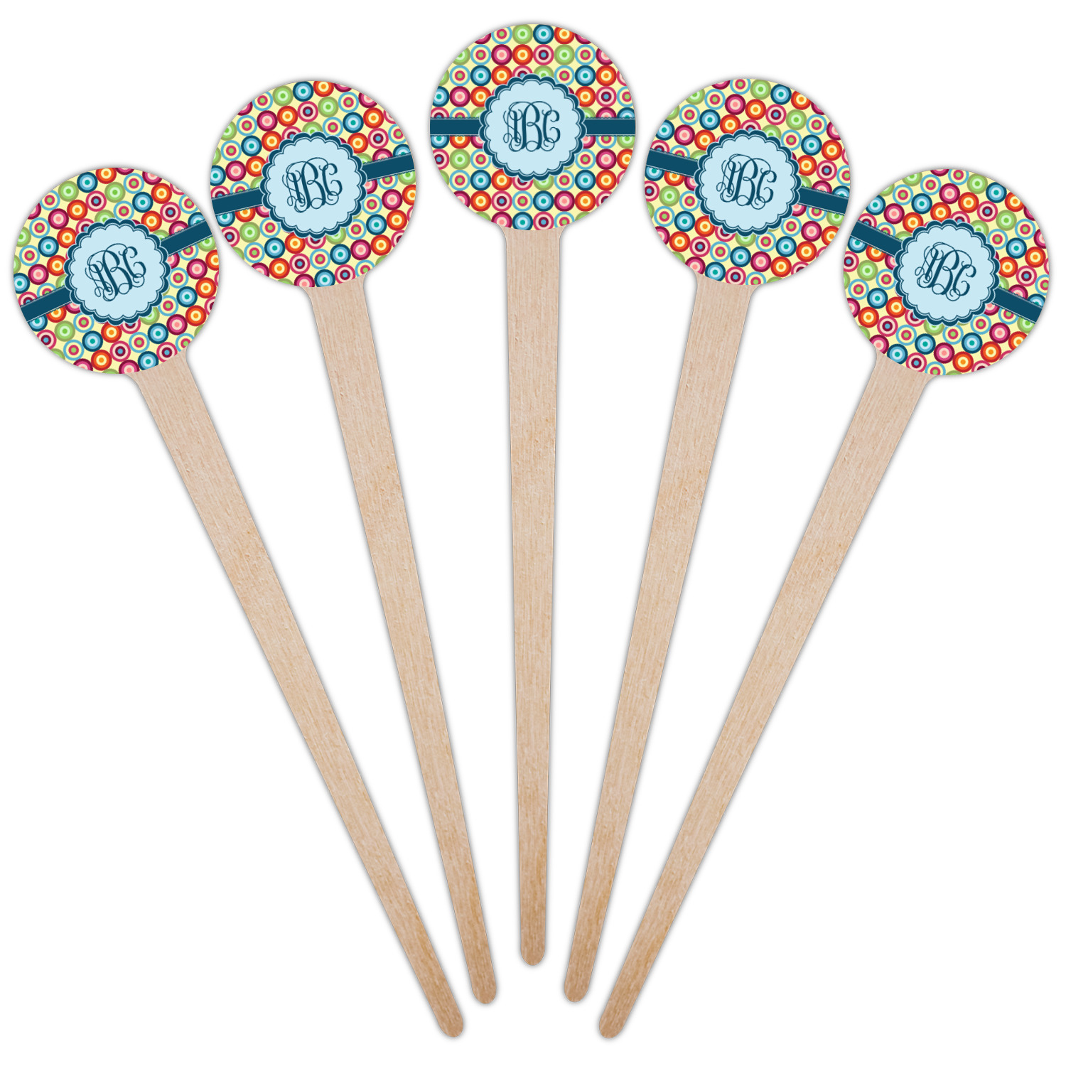 Circles Designs for 4" Round Wooden Food Picks - Single-Sided