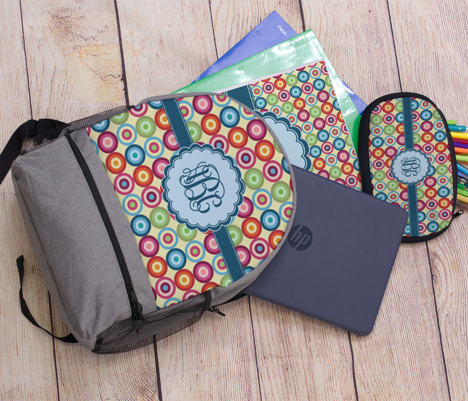 Modern meets retro! If you are looking to combine modern and retro patterns this one is it! This modern circle design has a wonderful multicolored retro look to it, all over a pale, sweet yellow. The background is re-color-able. We chose the retro light yellow, but it can be changed to any of the 100's of colors in our system.