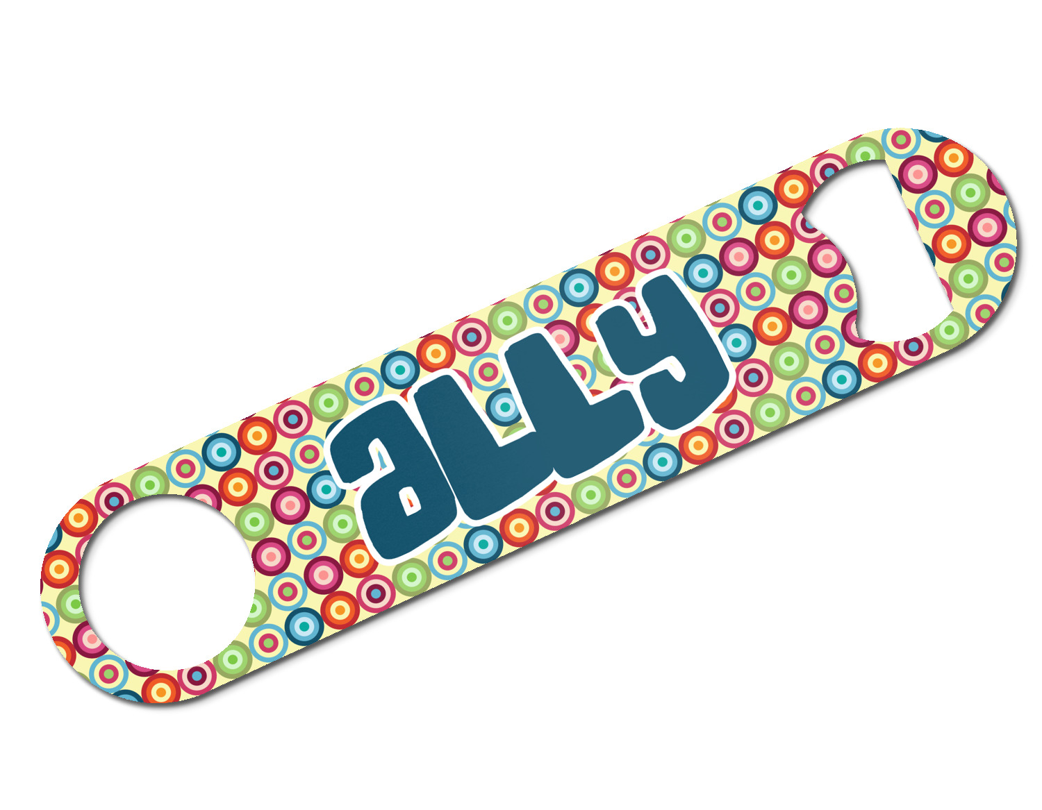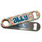 Made from stainless steel, these beer bottle openers are 7 by 1.625 inches, giving you plenty of leverage when trying to open a stubborn bottle. On one end of this personalized bottle opener, you'll find a circular hole for you to hang and display your opener. On the opposite end, you'll find the tool used for opening bottles. This opener in particular has the same structure and style as professional bartender bottle openers. Your customization is sublimated onto both the back and front, and both sides can be customized individually. Choose from one of our two base colors - white or silver.