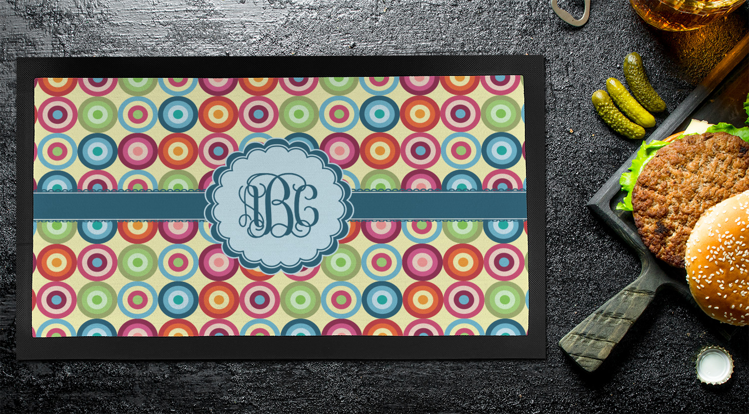 Modern meets retro! If you are looking to combine modern and retro patterns this one is it! This modern circle design has a wonderful multicolored retro look to it, all over a pale, sweet yellow. The background is re-color-able. We chose the retro light yellow, but it can be changed to any of the 100's of colors in our system.