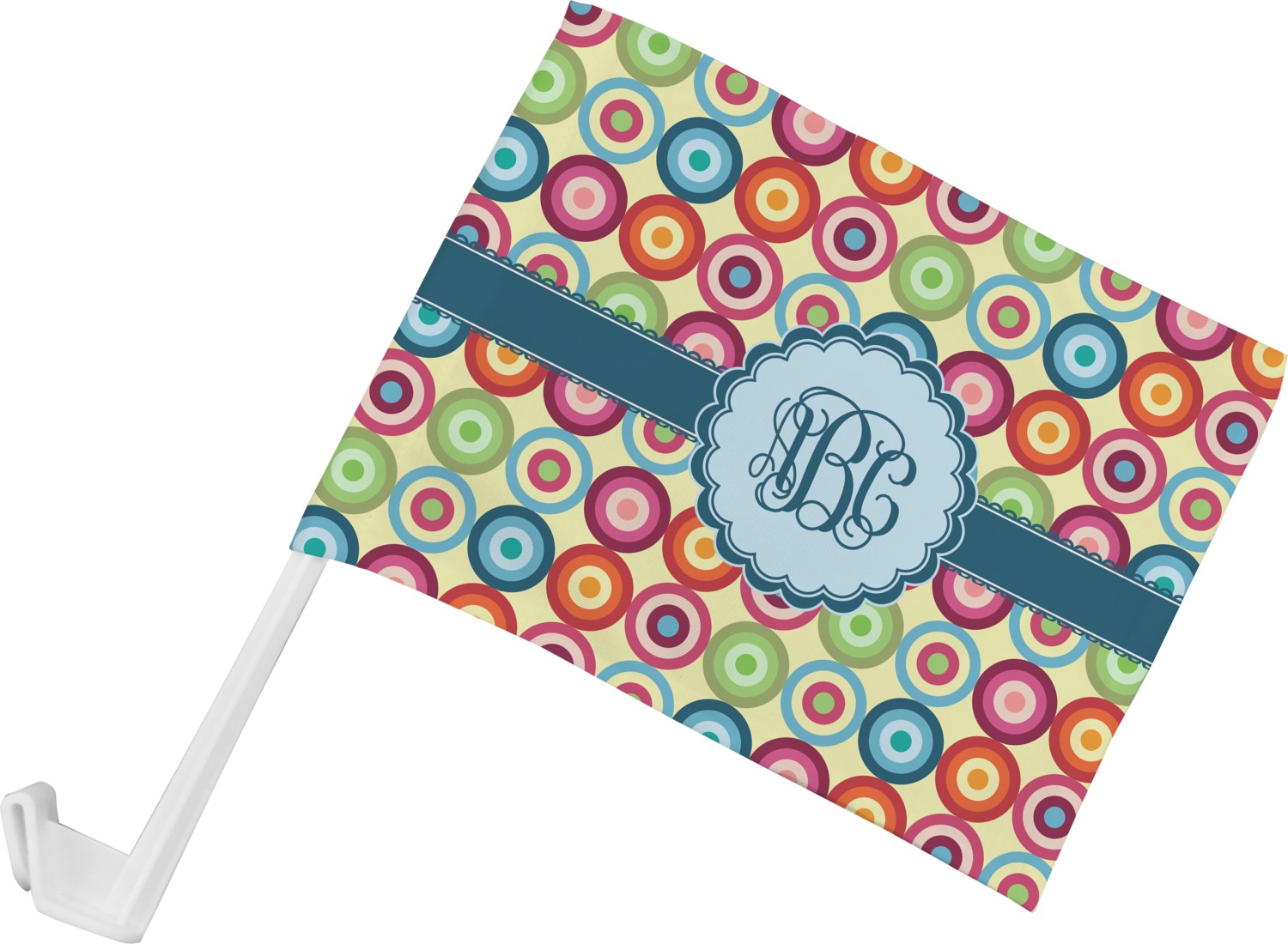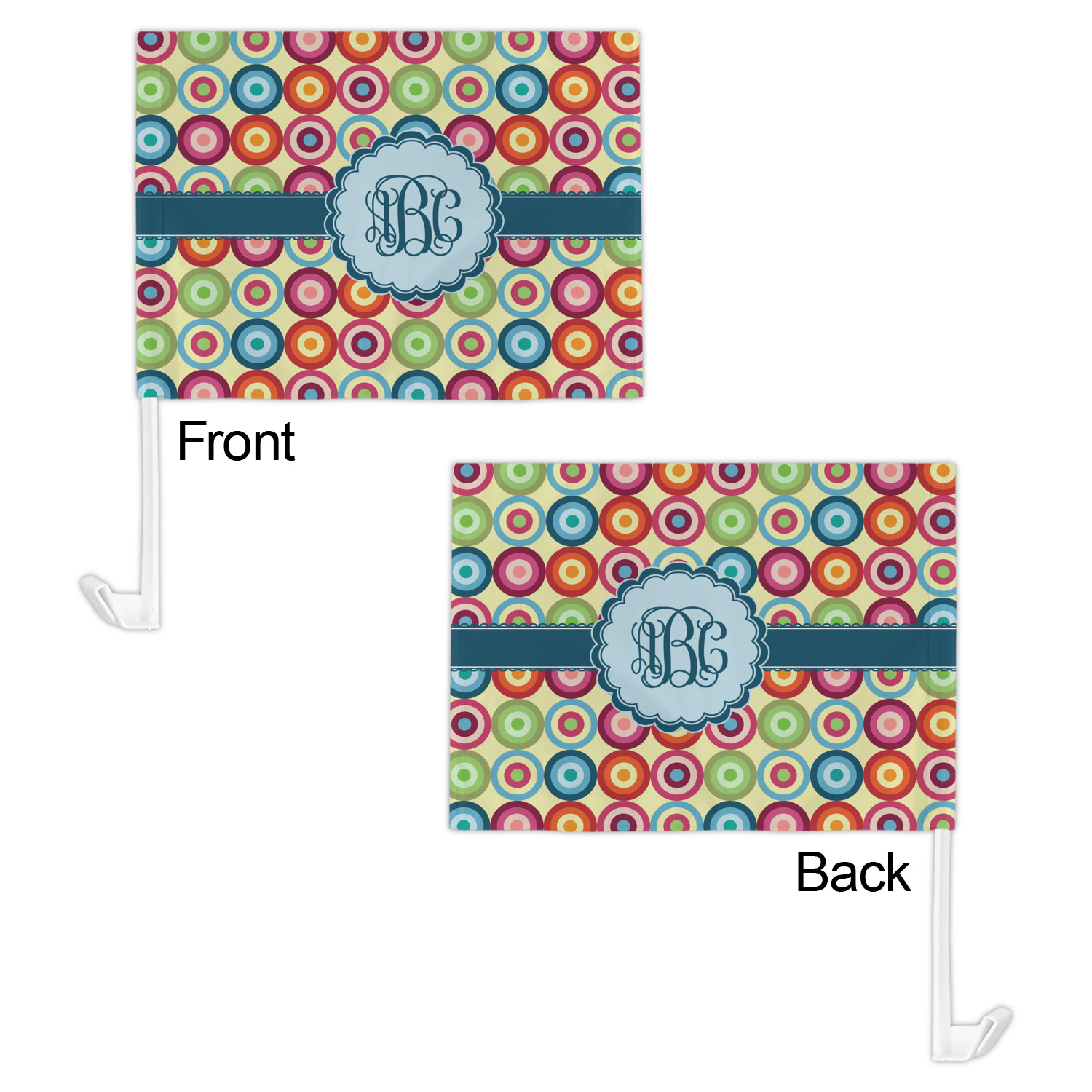Our personalized flags are made from a durable, yet lightweight cloth that will proudly bear your logo or design of choice, while withstanding the outside elements. We have two size options - 8" x 11" and 11" x 15". Both come with a flag pole which includes a clip that secures the pole to the side window, whether it is rolled up or down. The flags are printed on both sides to display your design from all directions.