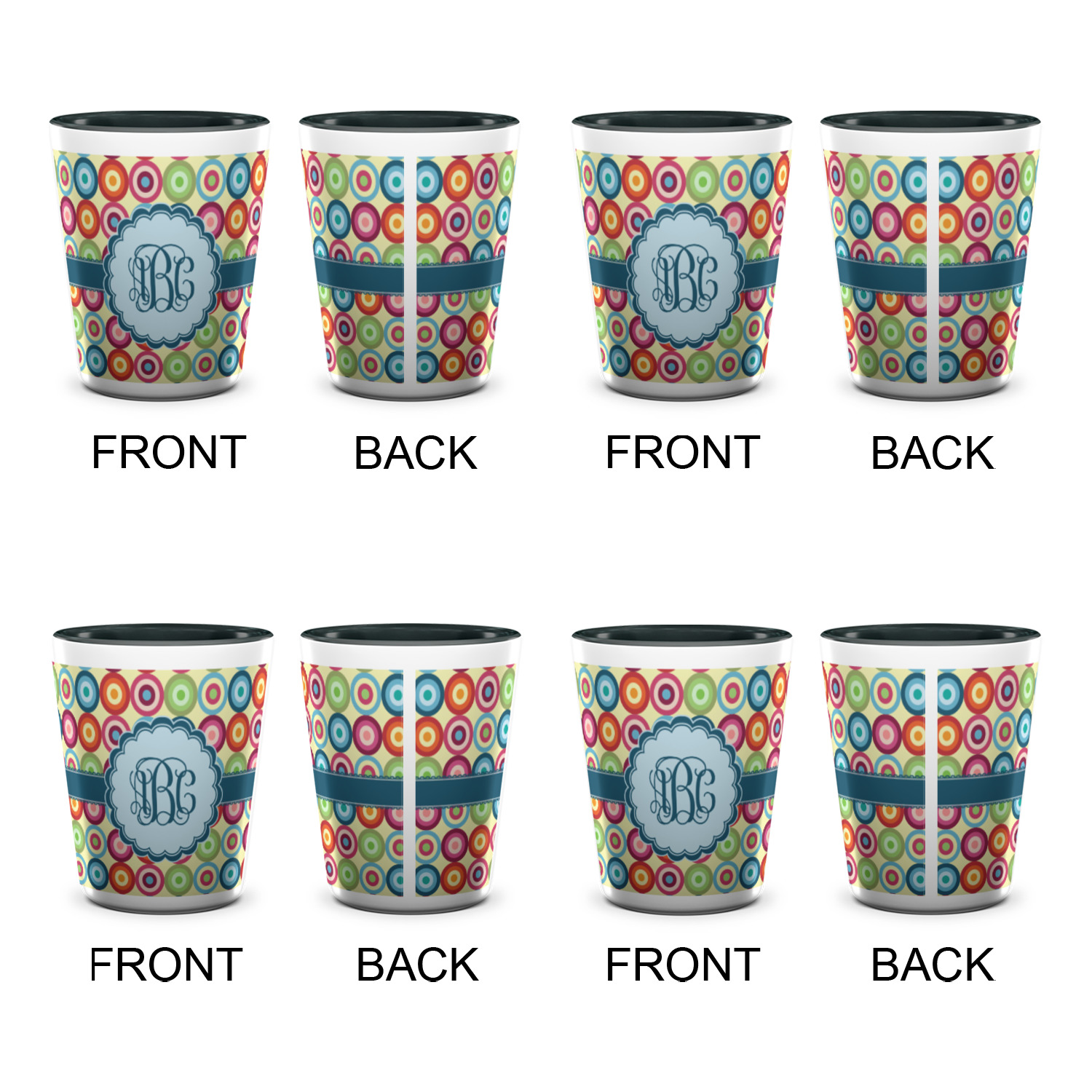 Circles Designs for Ceramic Shot Glasses - 1.5 oz - Two Tone - Set of 4