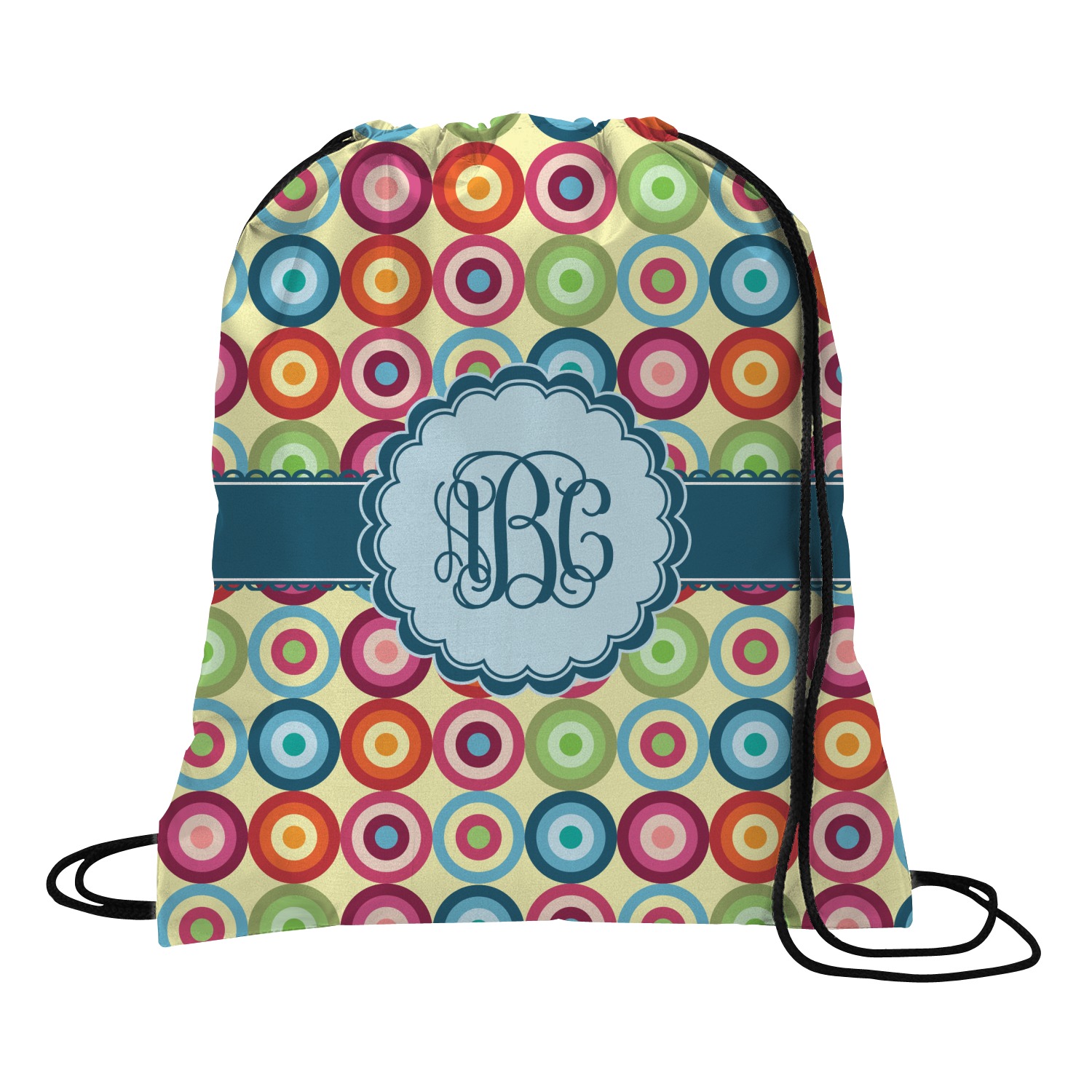 Our drawstring backpacks are custom made for you here in the USA. We offer a great selection of cinch bags and it is your choice to personalize them with the text of your choice, in the format of your choice i.e. monogram, name, initial, name & initial. We offer many different patterns and prints; and many of the patterns are available in 45 different colors.