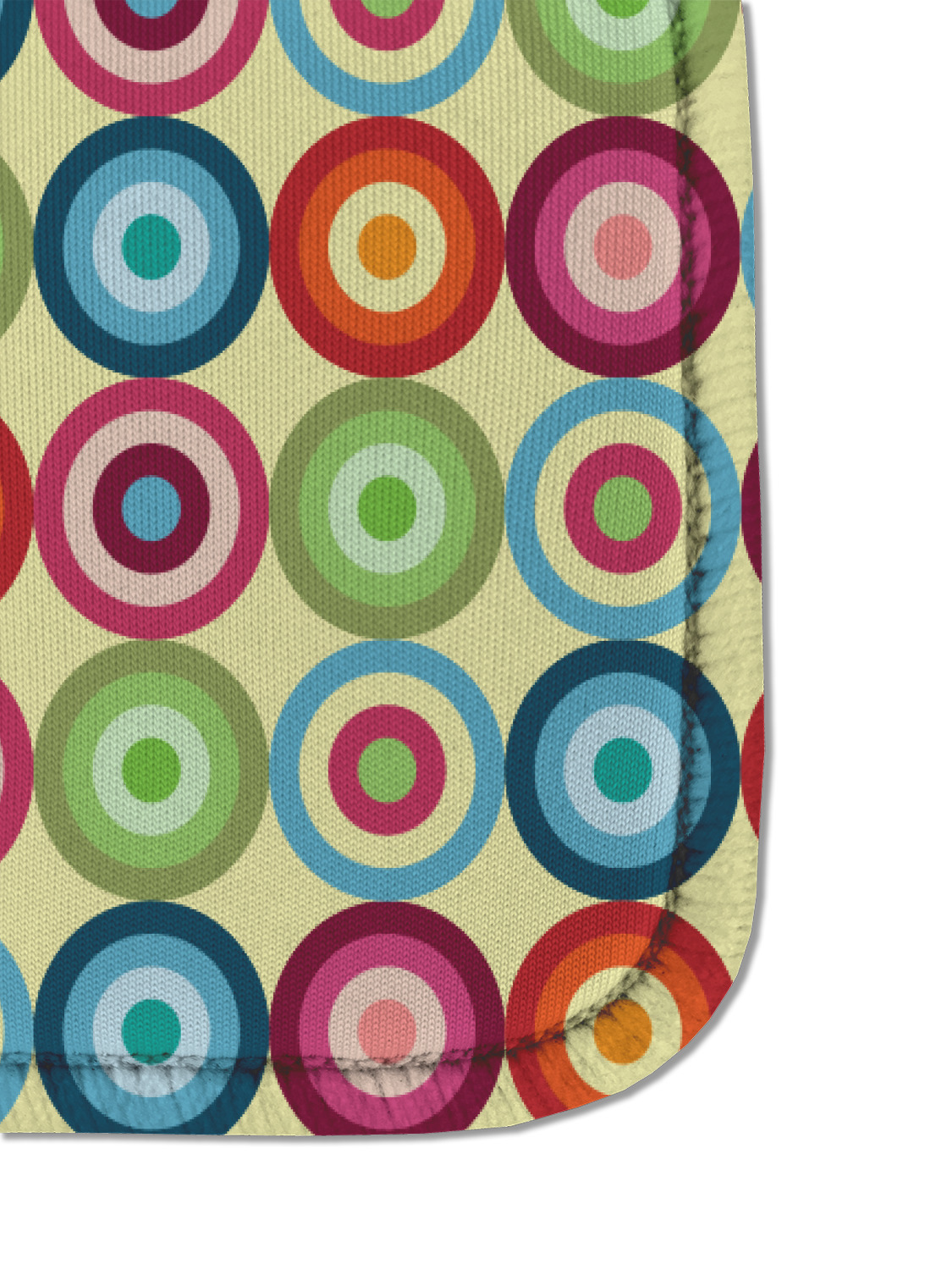 Modern meets retro! If you are looking to combine modern and retro patterns this one is it! This modern circle design has a wonderful multicolored retro look to it, all over a pale, sweet yellow. The background is re-color-able. We chose the retro light yellow, but it can be changed to any of the 100's of colors in our system.