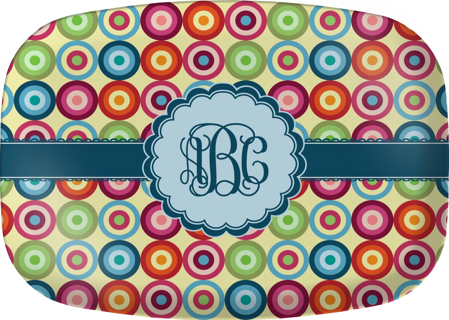 Modern meets retro! If you are looking to combine modern and retro patterns this one is it! This modern circle design has a wonderful multicolored retro look to it, all over a pale, sweet yellow. The background is re-color-able. We chose the retro light yellow, but it can be changed to any of the 100's of colors in our system.