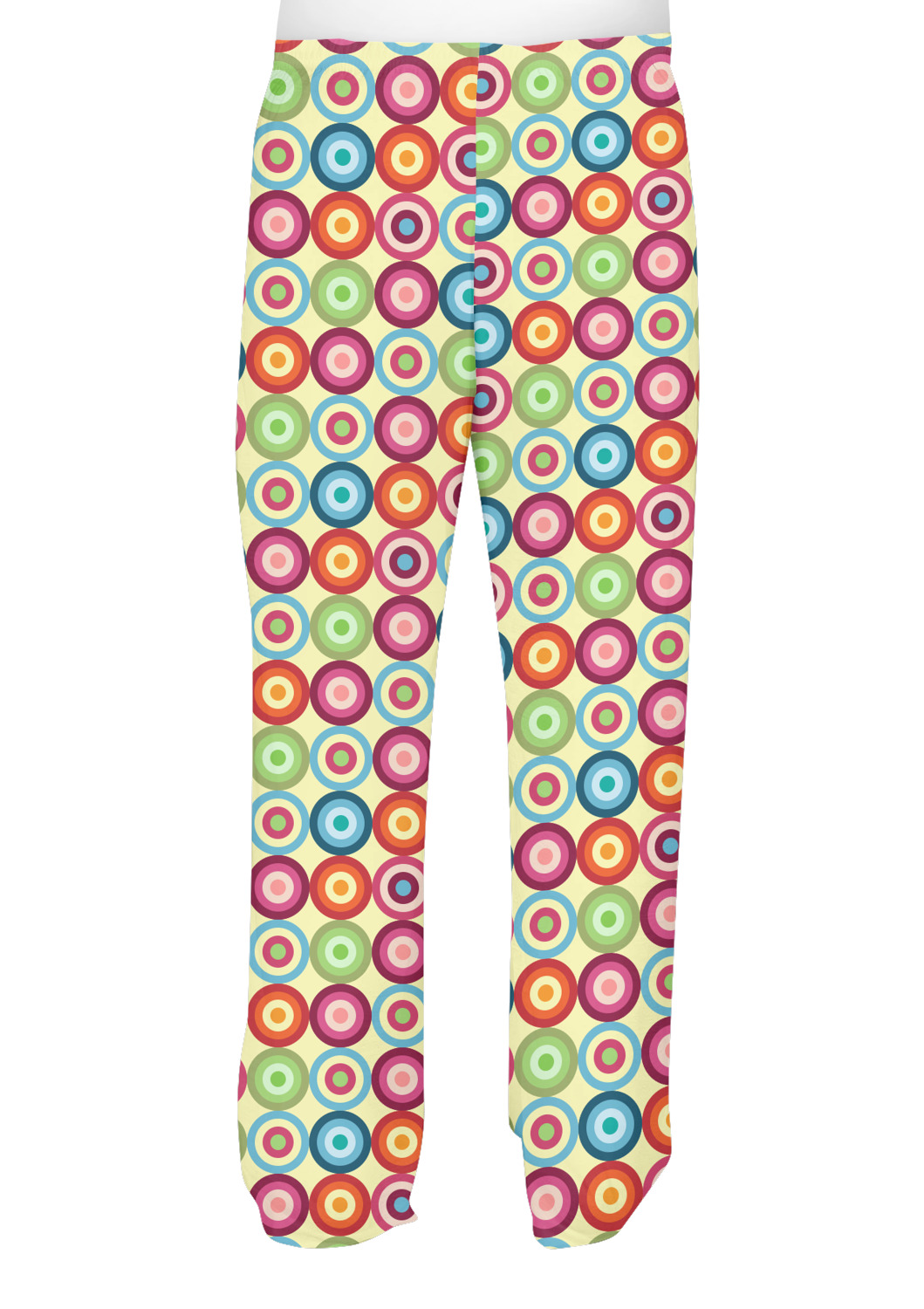 Modern meets retro! If you are looking to combine modern and retro patterns this one is it! This modern circle design has a wonderful multicolored retro look to it, all over a pale, sweet yellow. The background is re-color-able. We chose the retro light yellow, but it can be changed to any of the 100's of colors in our system.