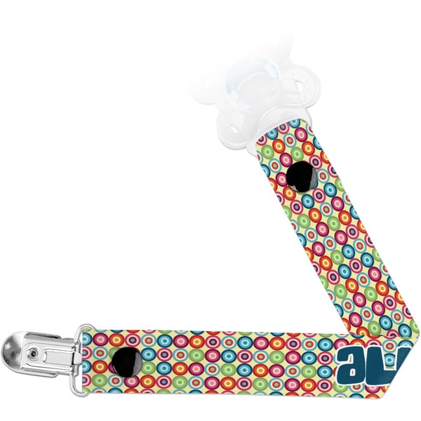 This personalized pacifier clip is the ideal size and measures at approximately 7.5 inches in length, when either end is snapped closed. On one end, you'll find a snap button. This button of your baby's pacifier holder is what can be attached to their pacifier to hold is securely in place. Simply open the snap, slip it through the pacifier opening, and snap it back into place. On the opposite end of this baby pacifier holder, you'll find a metal clip that can secure to a baby's collar or sleeve. This clip ensures that the strap stays in place, and that your baby's pacifier is always on hand.
