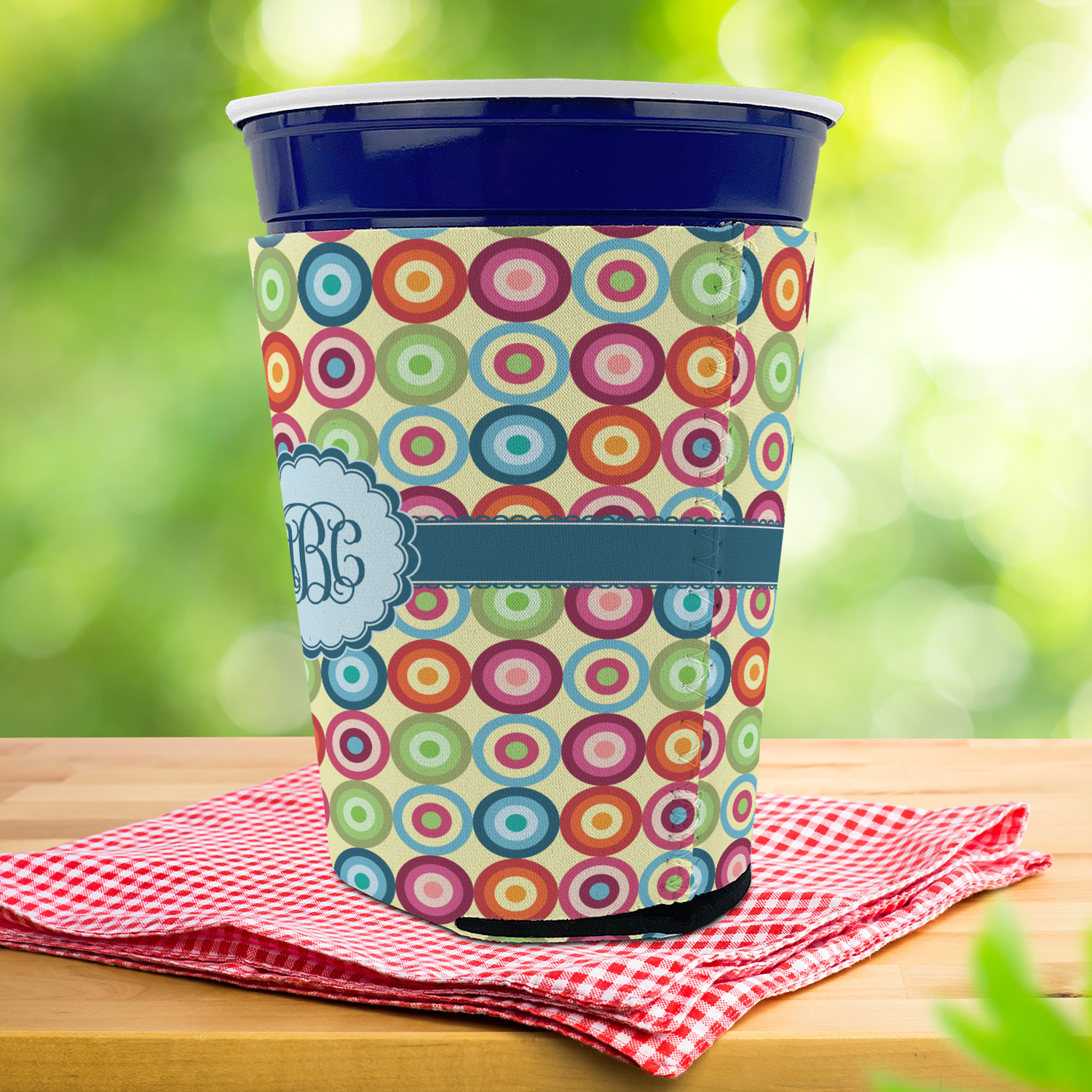Made from neoprene with a polyester outer fabric and sewn seams, these premium quality party cup sleeves are very durable and will hold up to heavy use. They are available in 2 styles - with a bottom or just a sleeve to go around the outside of the tapered cup. The sleeve covers are about 4" tall and cover about 90% of the classic 16 oz. Solo cup.