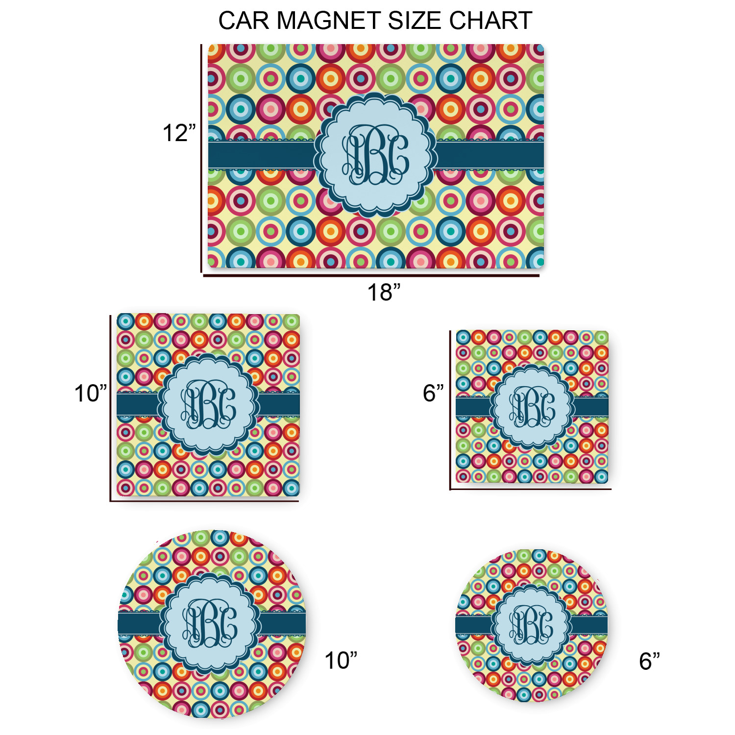 Your personalized car magnets are available for purchase in two shapes and two sizes. We carry round and square editions; each shape can either be 6 by 6 inches, or 10 by 10 inches, depending on your needs. Both versions are 1 millimeter thick, which is considered, within the industry, as the ideal thickness for automobile magnets. The magnetic car decals will adhere to any smooth, metal surface of your cars body, such as the trunk door or a side panel. However, please note that some vehicles are constructed from fiberglass bodies, which prevents the adhesion of anything magnetic. We advise that you test your vehicle before purchasing these magnets.