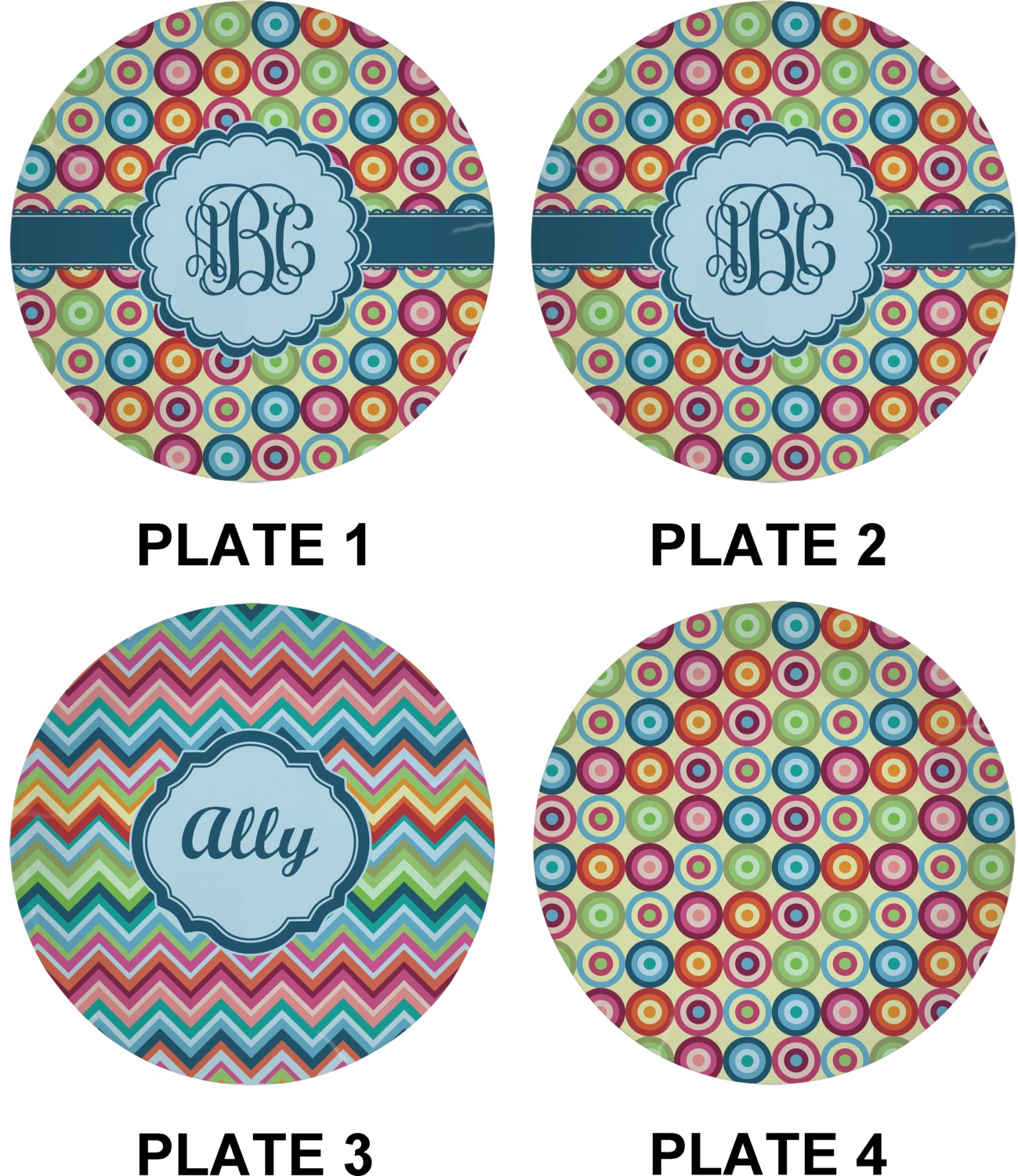 With a of designs and patterns, these plates are completely customizable. Choose a foodie design, complete with red-hot chili peppers, or go classic with stripes or plaid. Include your monogram or family name to make sure these plates never get lost at parties!