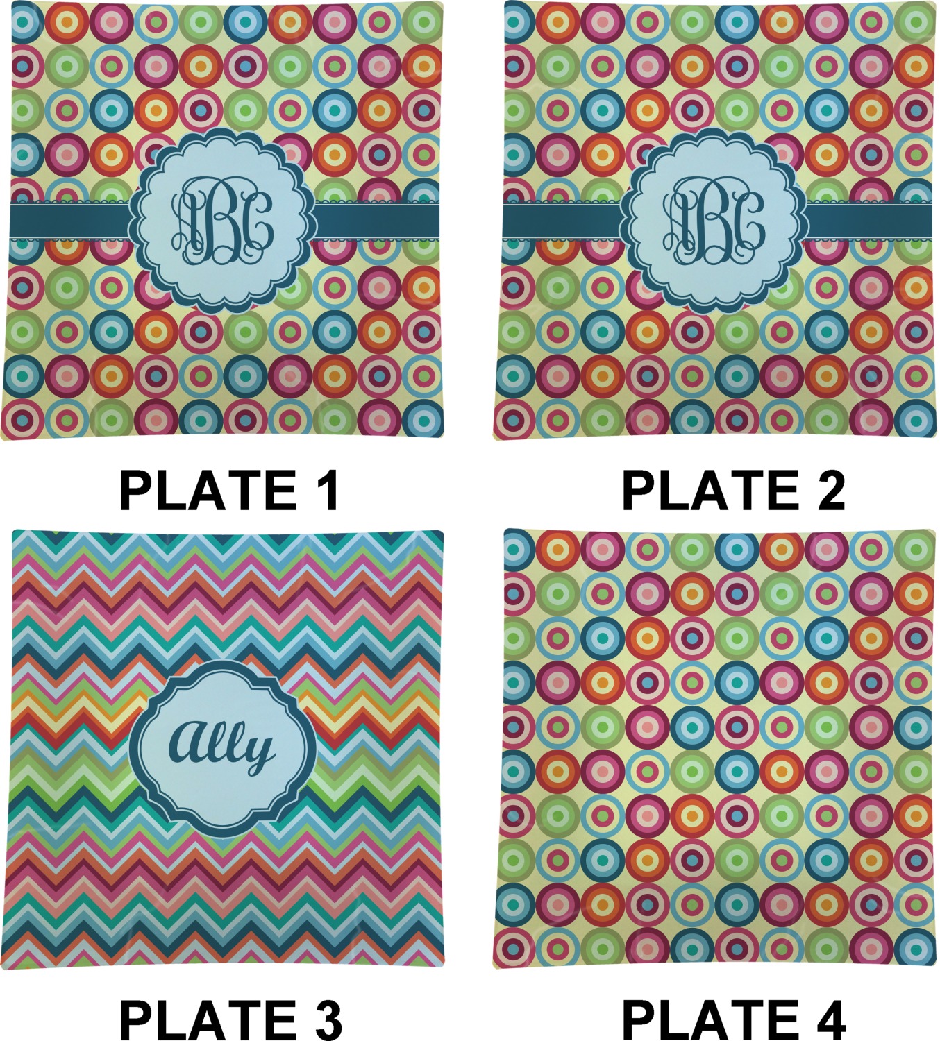 Circles Designs for Glass Square Lunch / Dinner Plates 9.5" - Set of 4