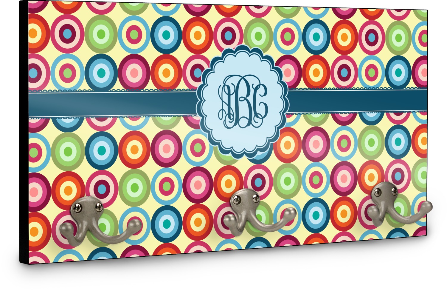 This coat rack is the perfect way to add some personality to your wall or entryway. The board is made of a strong maple that is approximately 16" x 8". The three 2-prong hooks are a sturdy metal that have three screws attaching them to the board. Your design is printed right onto the front of the board while the back and sides are a simple black.