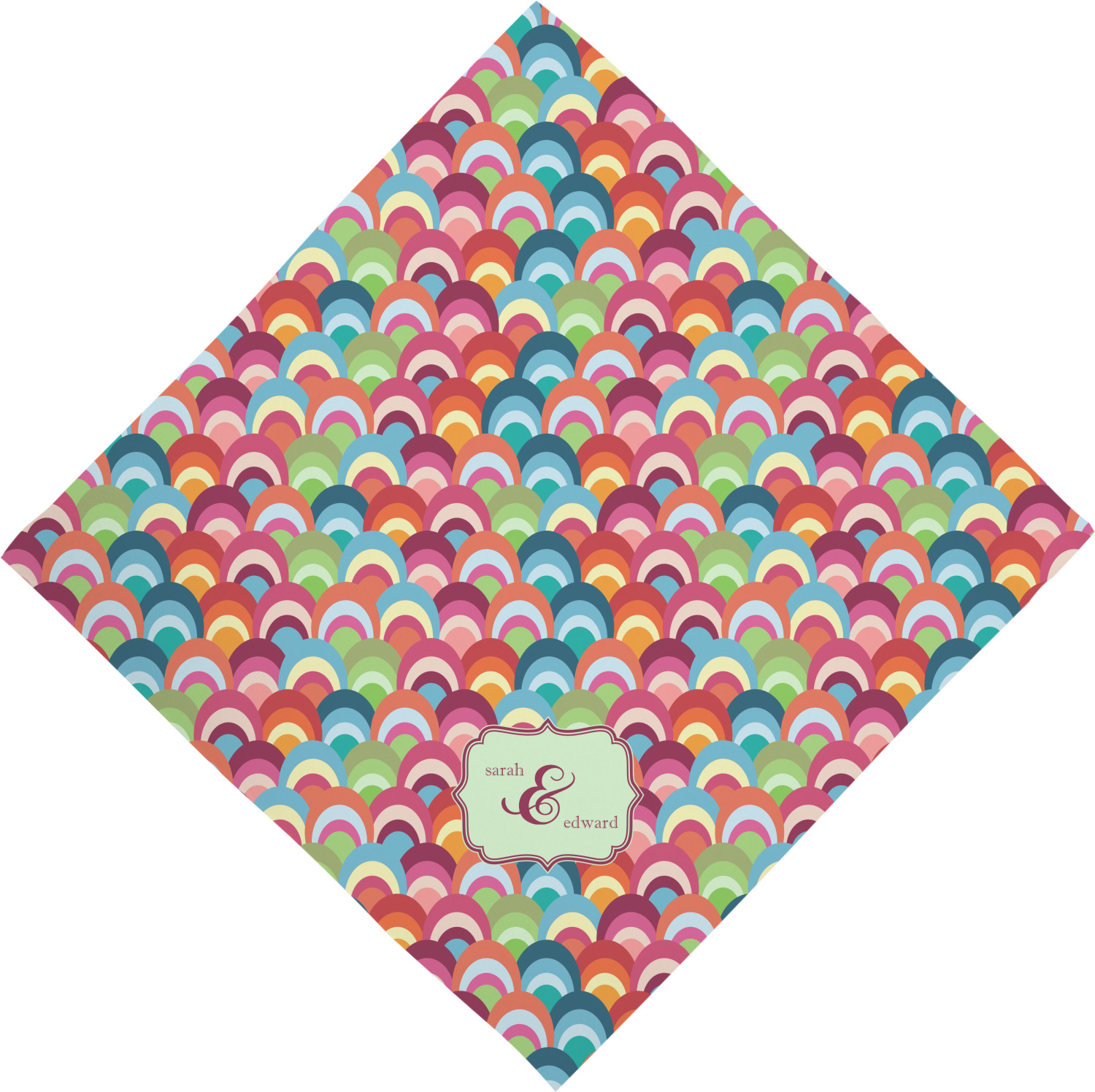 This beautiful pet bandana really is the perfect accessory. It is made from a silky feeling polyester and measures at approximately 23" x 23". Your personalization will be printed on a diagonal, so that you are able to read the personalization when folded into a triangle. This bandana fits best on large dogs, but can be folded smaller if there is no personalized text to fit smaller pets.
