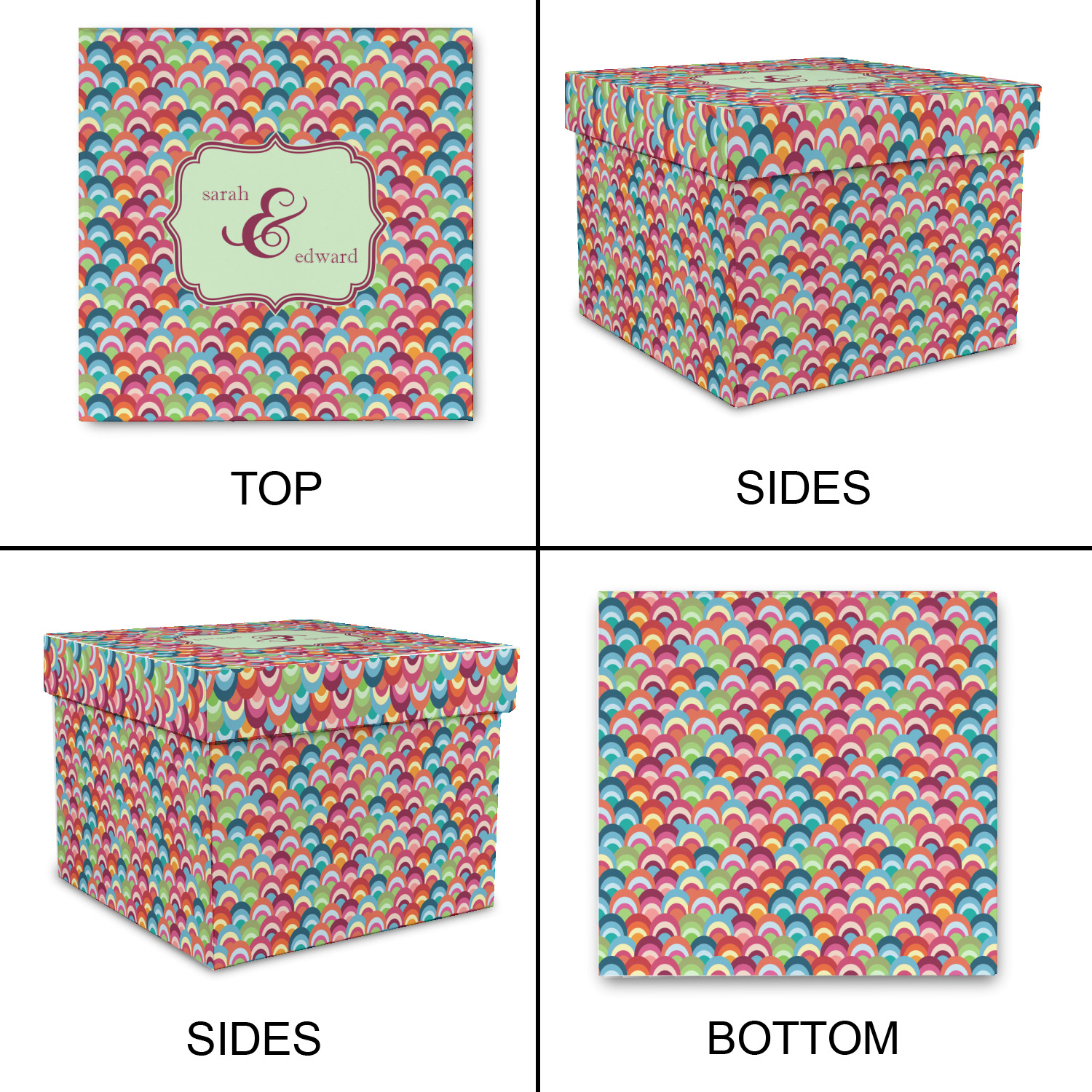 Modern meets retro! This modern fish scale design has a wonderful multicolored retro look to it. The decorating choices are endless with all these gorgeous colors.