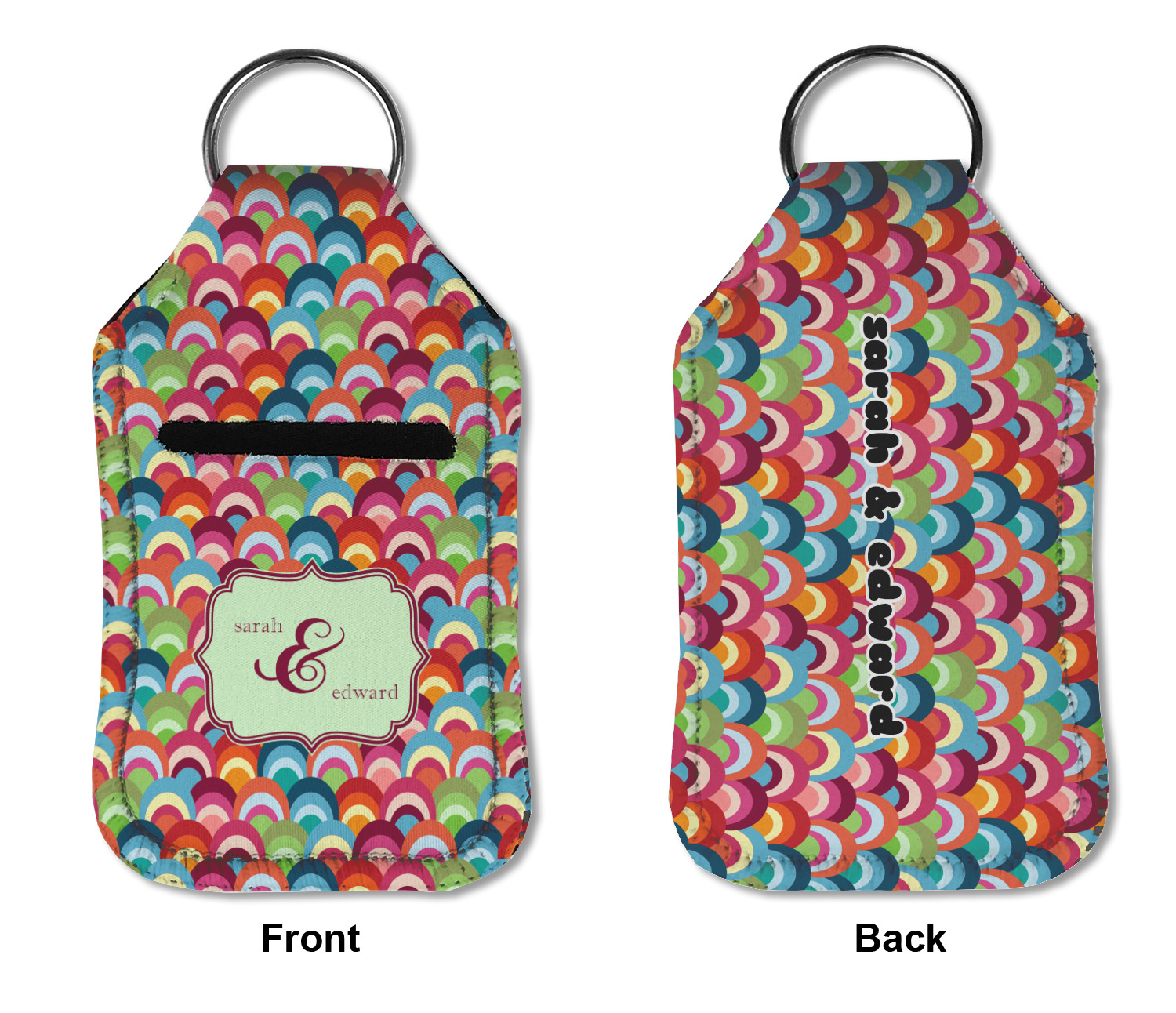Each hand sanitizer holder comes with its own empty travel-sized, refillable hand sanitizer sure to fit snug in your customized sanitizer case! Our hand sanitizer cases are a durable, yet soft neoprene material sure to last any daily activities or travel agenda. Customize and personalize a hand sanitizer bottle holder with one of our two sizes - small (4.25" x 2.25") or large (5.5" x 2.5"). Each travel sanitizer holder comes with a keyring for attachment on bags, keys, or more!