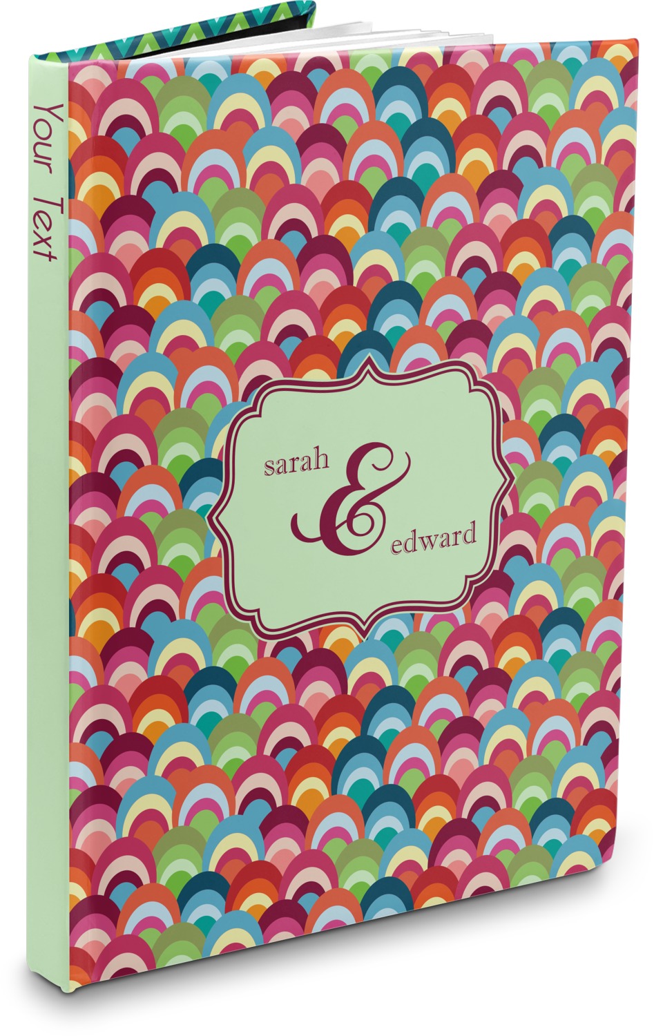 The hardcover of this personalized journal is covered with a smooth, matte, laminate coating. The unique laminate of the covers gives the hardcover notebook a smooth, sleek feel. Filled with 75, lined, white pages, this hardbound notebook has enough room for your reminders and notes. For your convenience, the pages have been perforated, which guarantees an easy tear and removal. Your customization is printed across the entire cover of the book, while the interior is black in color.