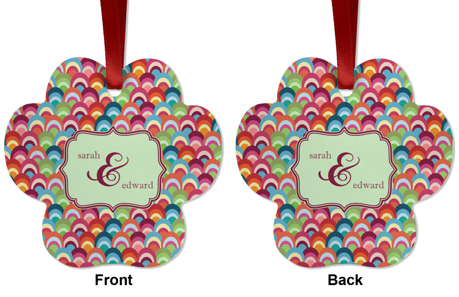 We offer double-sided printing on our personalized metal ornaments all with a gloss finish to make sure your Christmas tree continues to illuminate through the night. We offer 4 different metal ornament shapes to help express yourself or loved ones! Choose from our ball, paw print, star, or frame metal ornaments. Each metal ornament is an aluminum material sure to last you as many years as needed to share the joy and warmth of the holiday. We pair each customizable ornament with a red ribbon to tie your ornament and hang on your Christmas tree!