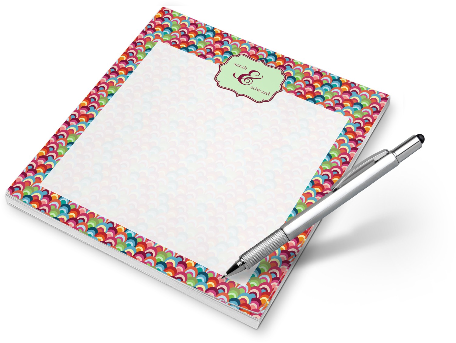 Your custom notepad features 50 sheets of thick, white paper, with your customization in the background and the edges. At approximately 6" x 5.5", these personalized memo pads are slightly larger than your average notepad. The individual notes tear easily from binding, which allows for quick, convenient, note-taking.