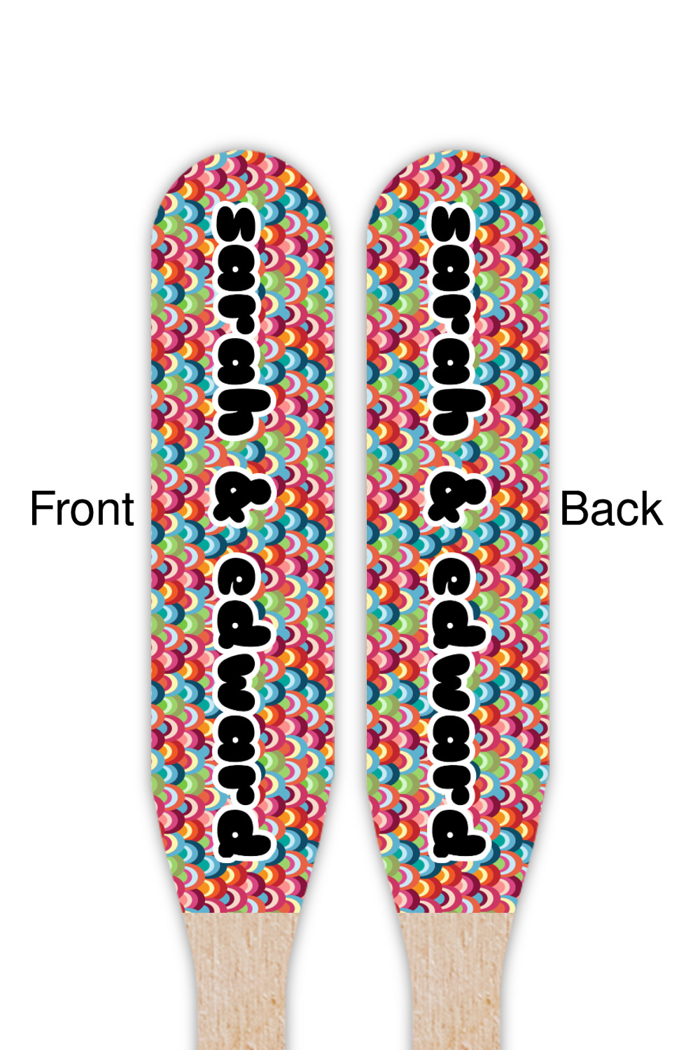 Our paddle style food & drink picks are available in 2 print styles - single sided and double sided.