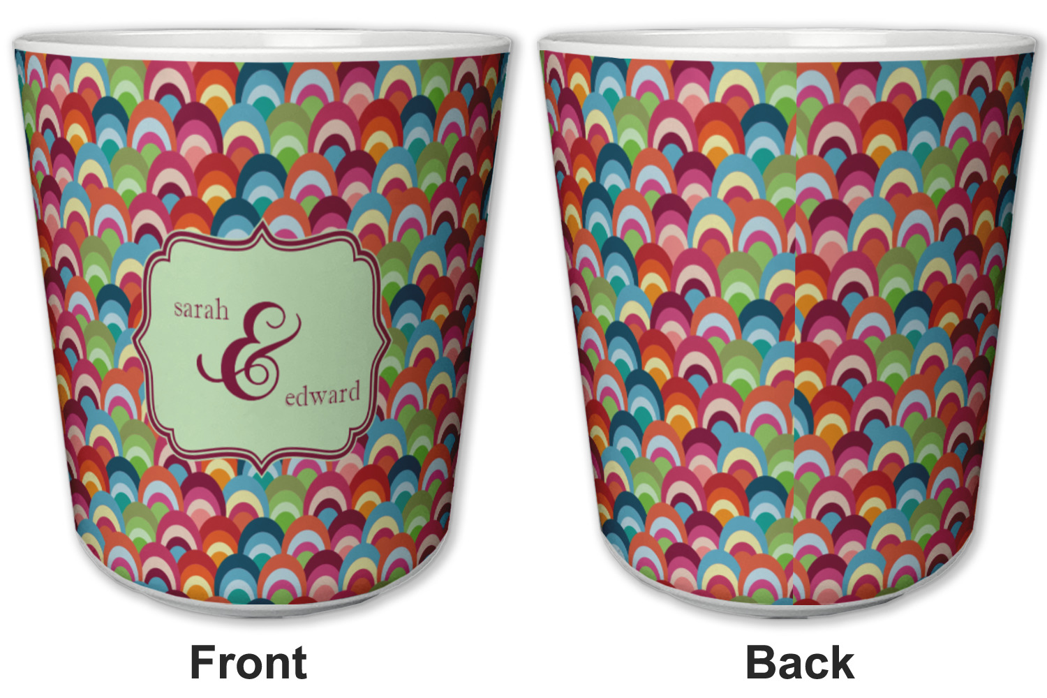 Made from a durable plastic, these tumbler cups are strong enough to withstand daily use and are perfect for young children. Each of these personalized plastic cups holds 6 ounces and measure at approximately 3" x 3" x 3.25". Place them in the bathroom as a rinsing cup, or give them to your kids during mealtimes. These 6 oz. plastic cups are BPA free, microwave and dishwasher safe, for your convenience. Your personalized design is displayed across the entire outside of this cup, while the inside is white in color to make your customization really stand out.