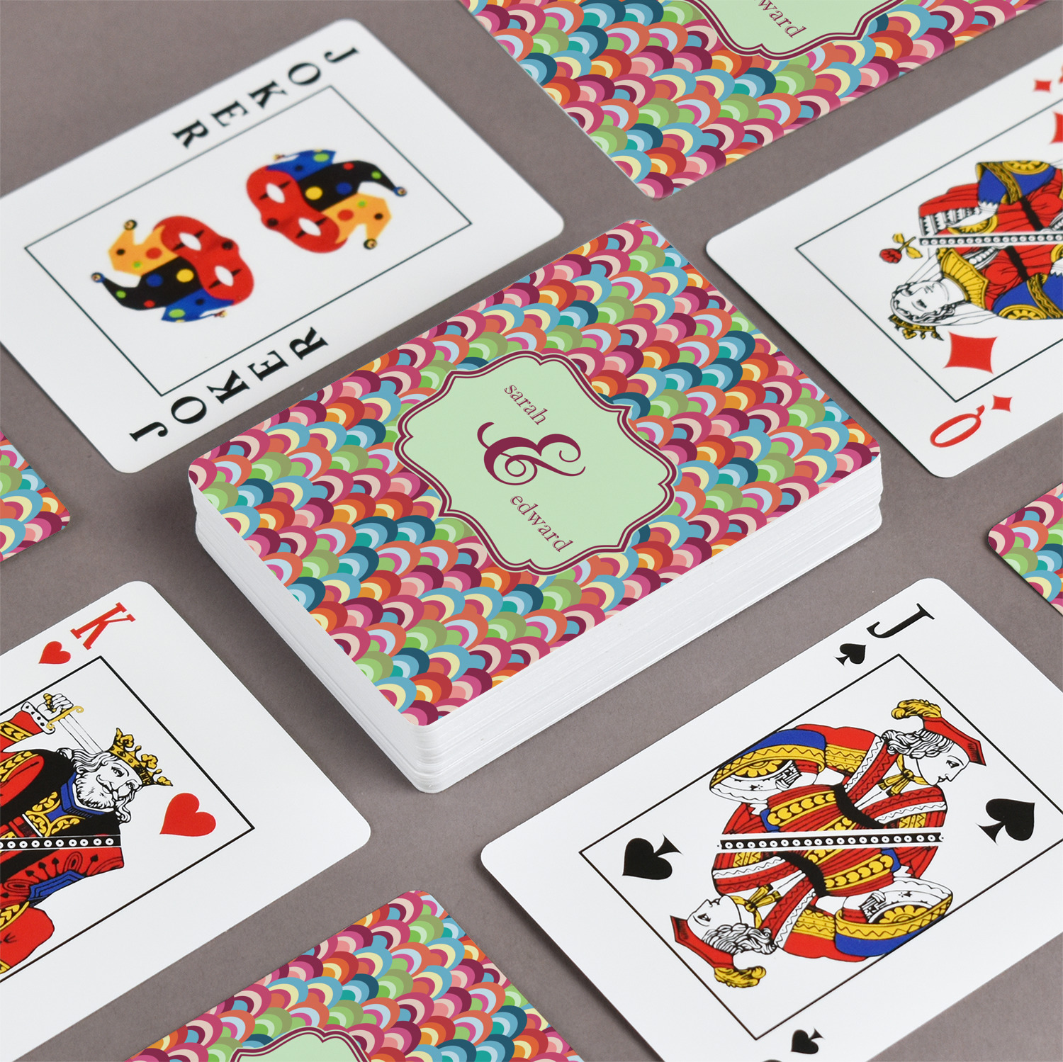 Our playing cards are perfect for family game nights or poker nights. A deck of customized playing cards ups the level of fun & entertainment to your game or poker nights. Imagine playing cards customized to match the theme of your game room, or game night, or that special event, or occasion with gambling tables!