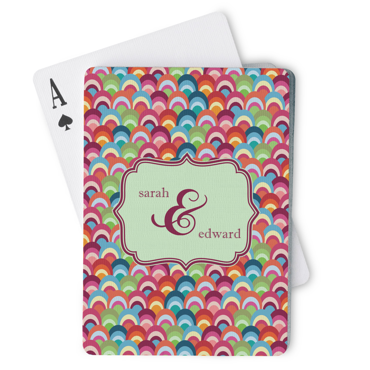 Here at YouCustomizeIt, you can customize your playing cards by uploading your own design, photo, or logo. We have design templates that you can customize by changing the patterns, colors, graphics, personalization styles, etc. - using our free for you to use in our design elements library.